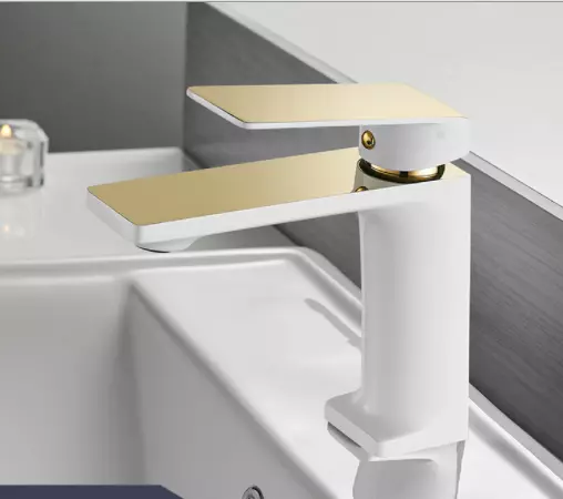 Смеситель для умывальника однорычажный кран латунь WanFan для ванны Белый с Золотым