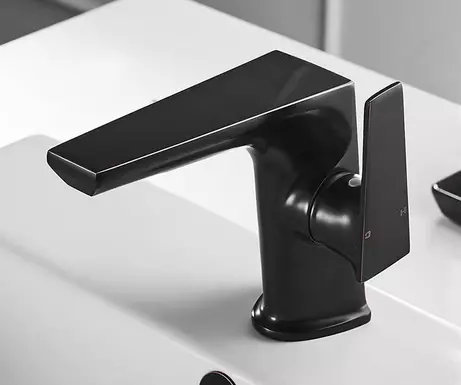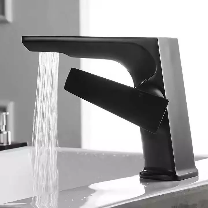 Смеситель для умывальника, раковины из латуни дизайнерский, с боковым рычагом цвет черный