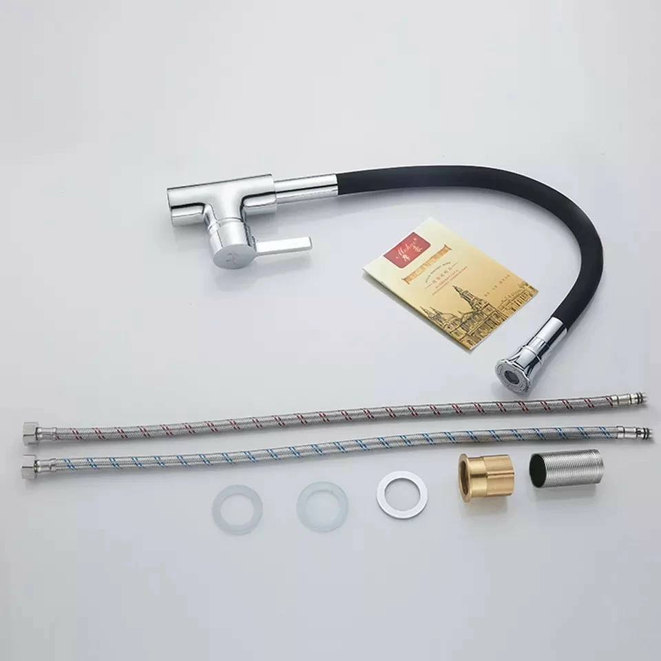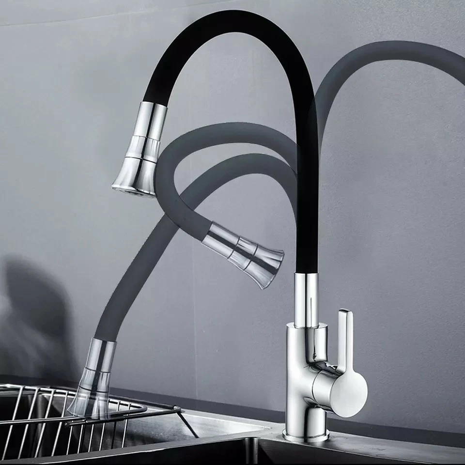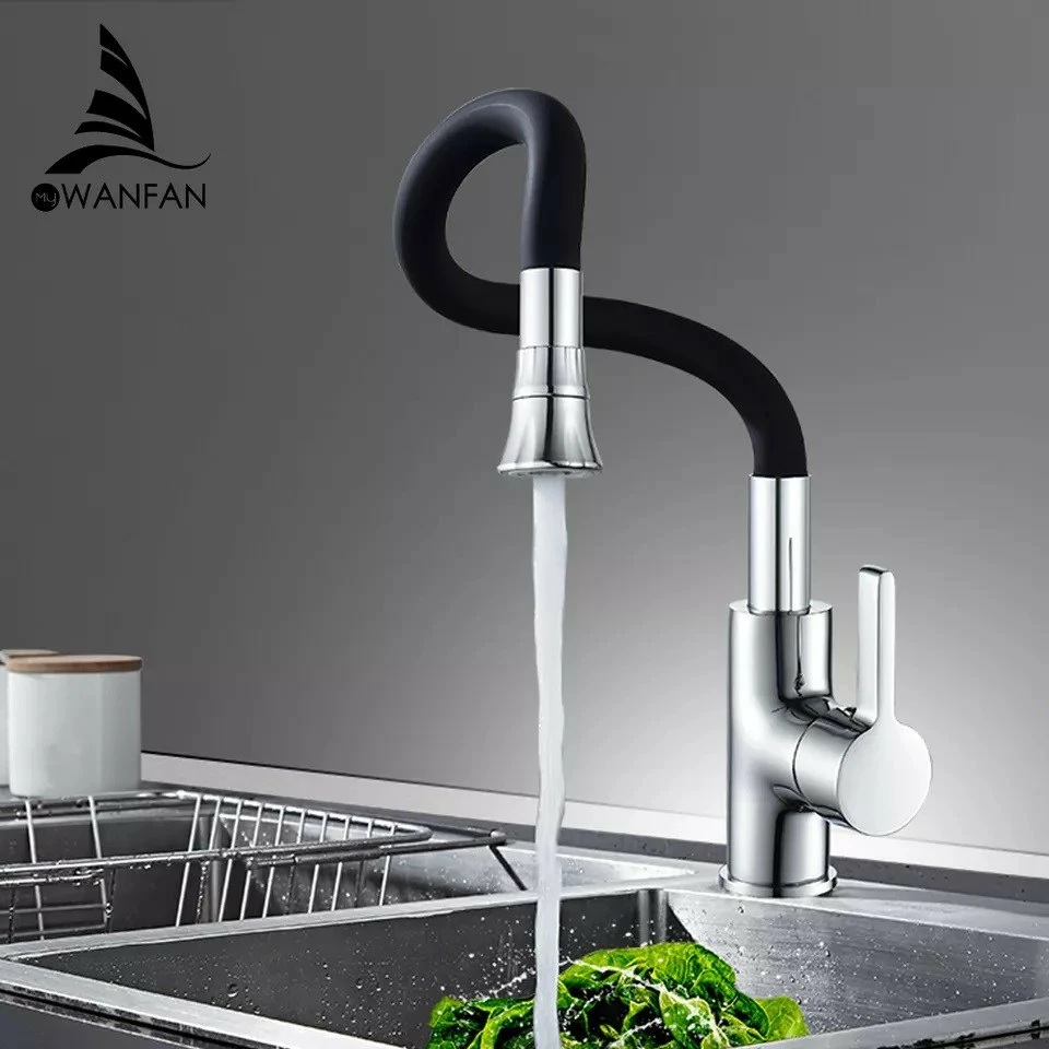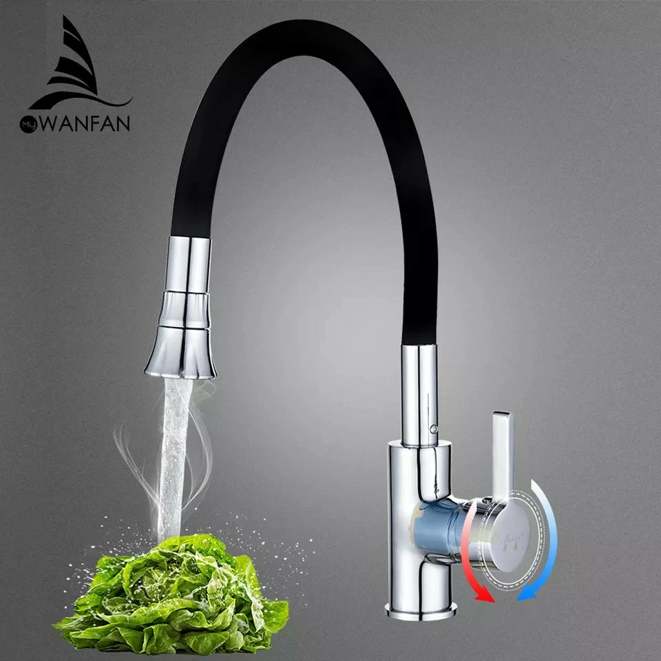 Смеситель кухонный с гибким изливом, однорычажный кран для раковины с аэратором WanFan Черный-Хром