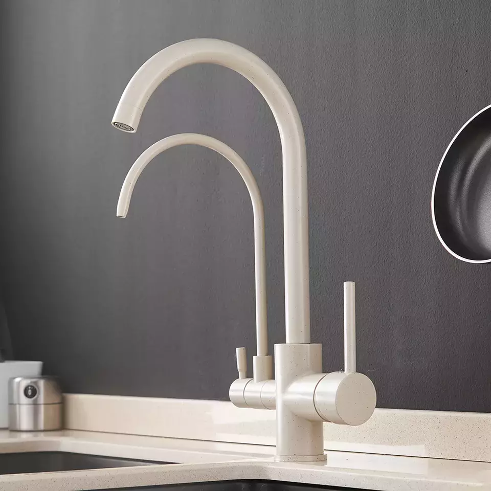 Смеситель кухонный с подключением к фильтру, двухрычажный, кран для кухни латунный WanFan Бежевый