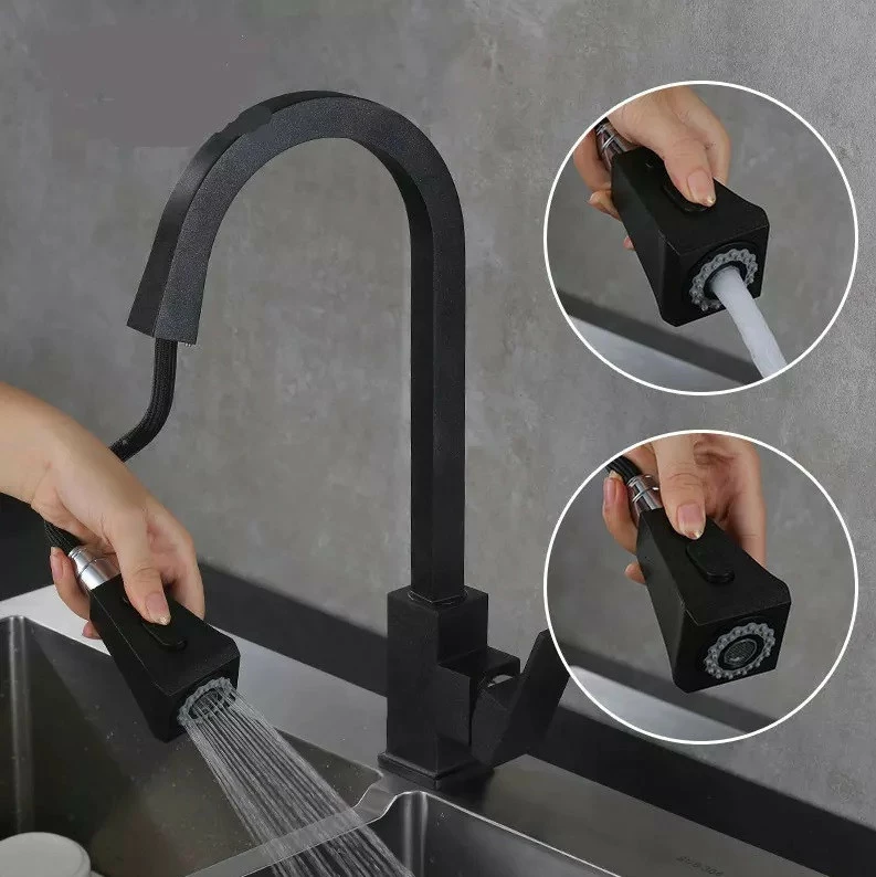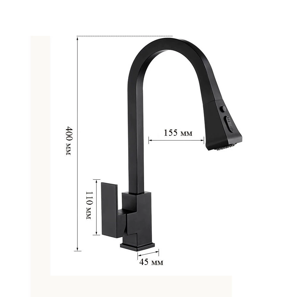 Смеситель кухонный с выдвижным сливом, однорычажный кран для раковины на кухню, латунный WanFan Черный