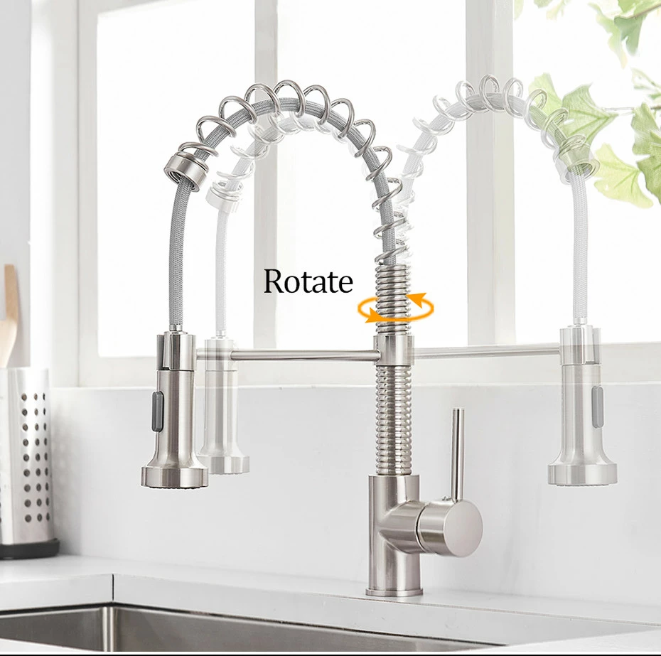 Смеситель кухонный выдвижной слив кран два режима воды вращающийся на 360 градусов WanFan Хром