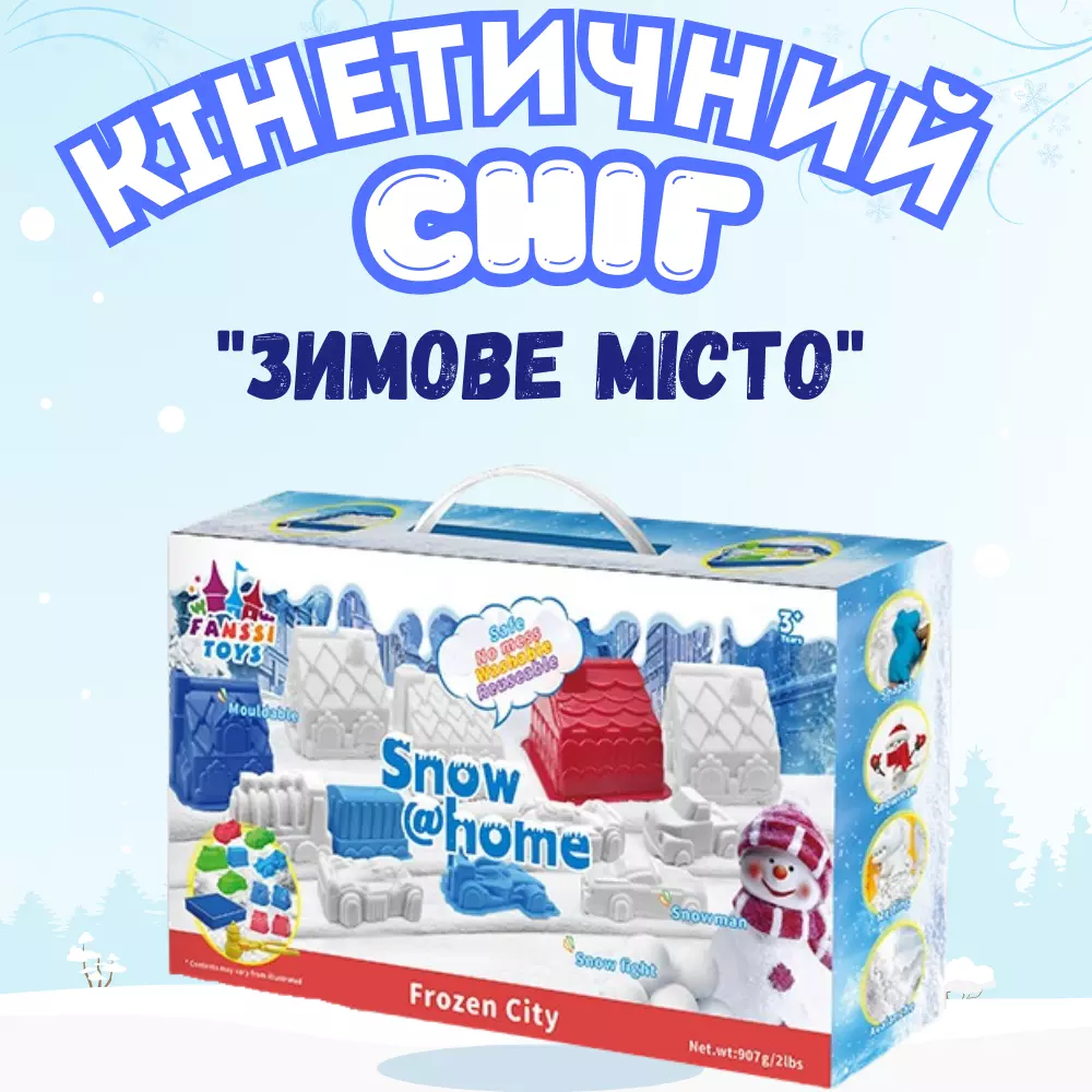 Снег кинетический для детей "Снежный город"песок,масса для лепки набор для творчества с формой для лепки