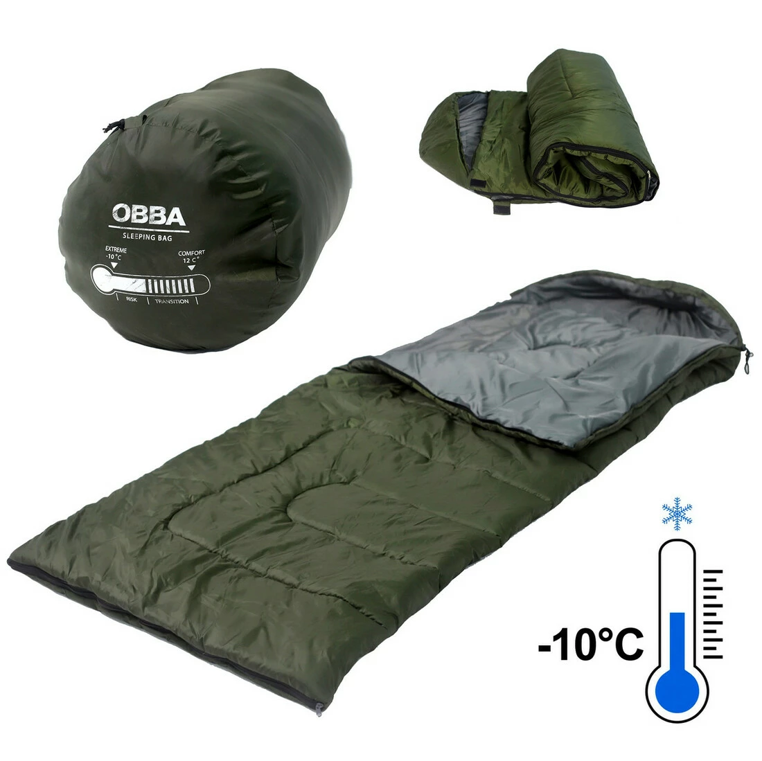 Спальный мешок тактический OBBA для военных и армии ВСУ, Спальник-кокон арммейский на температуру -10, Зеленый