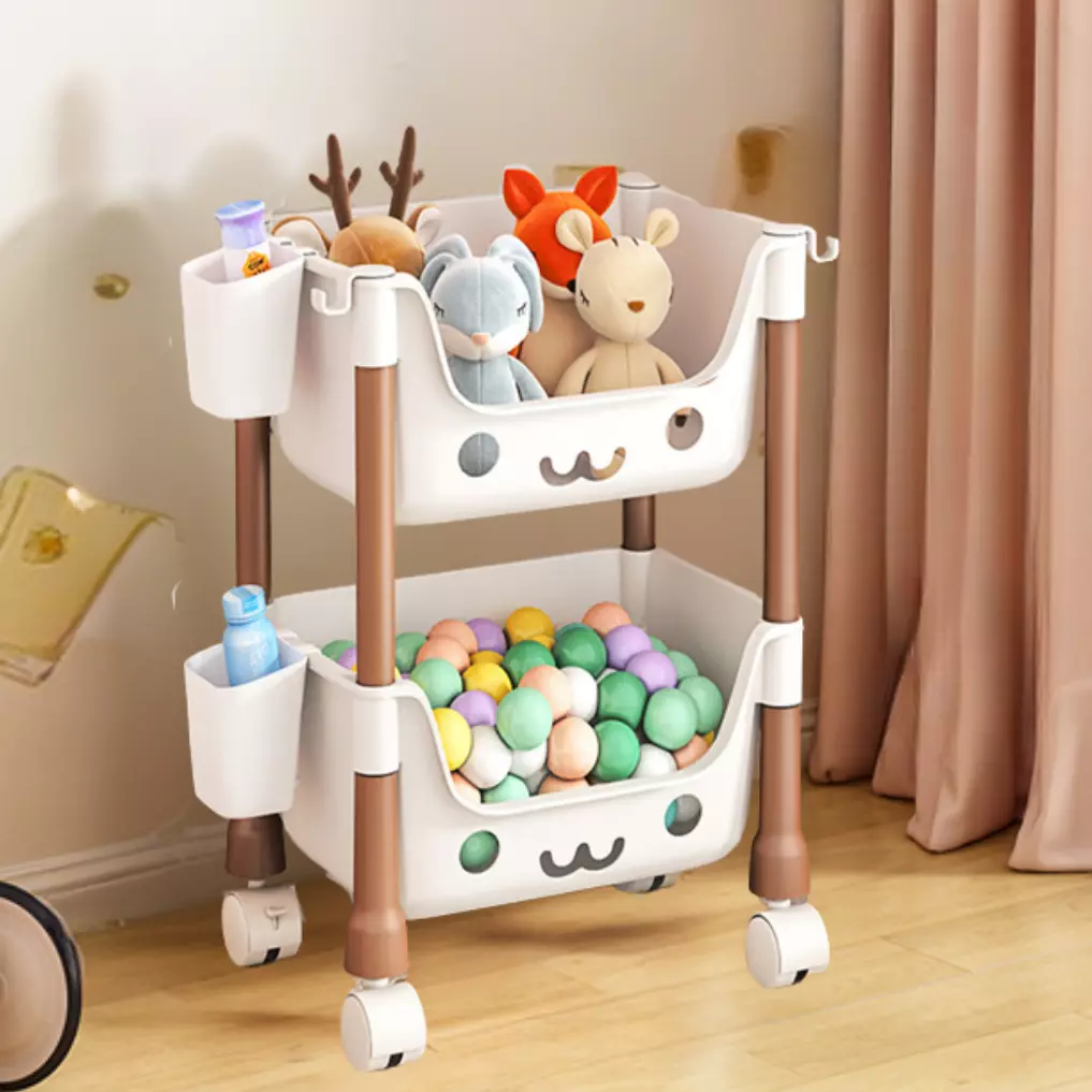Стеллаж для игрушек на колесиках с двумя уровнями для детской, органайзер, 38×28×19 см, белый/коричневый