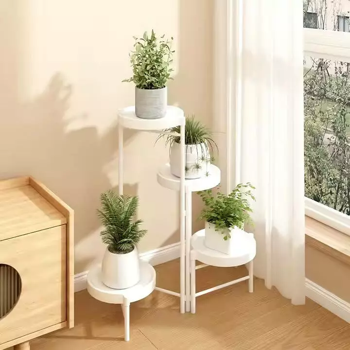 Стеллаж для растений и горшков с цветами с металлическими полками на 4 яруса цвет белый