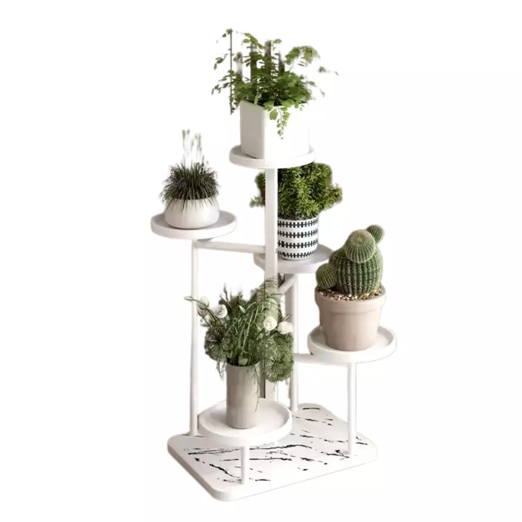 Пятиуровневая конструкция позволяет рационально использовать пространство и создаёт красивые зеленые уголки в любом помещении. Стеллаж помогает упорядочить растения, создавая удобный доступ к каждому горшку для полива и ухода. Его легкий вес (всего 2.6 кг) делает стеллаж мобильным и легко перемещаемым.