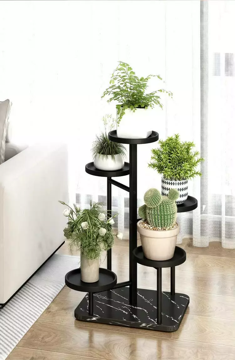 Пятиуровневая конструкция позволяет рационально использовать пространство и создаёт красивые зеленые уголки в любом помещении. Стеллаж помогает упорядочить растения, создавая удобный доступ к каждому горшку для полива и ухода. Его легкий вес (всего 2.6 кг) делает стеллаж мобильным и легко перемещаемым.