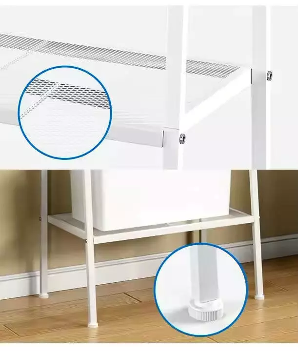Три яруса полок предоставляют достаточное пространство для размещения самых разных предметов. Каждая полка равномерно распределяет нагрузку, обеспечивая стеллажу устойчивость и прочность. Его металлическая конструкция обладает высоким уровнем износостойкости, а покрытие обеспечивает дополнительную защиту от воздействия влаги и механических повреждений, что позволяет использовать его в разных комнатах, включая кухню и ванную.