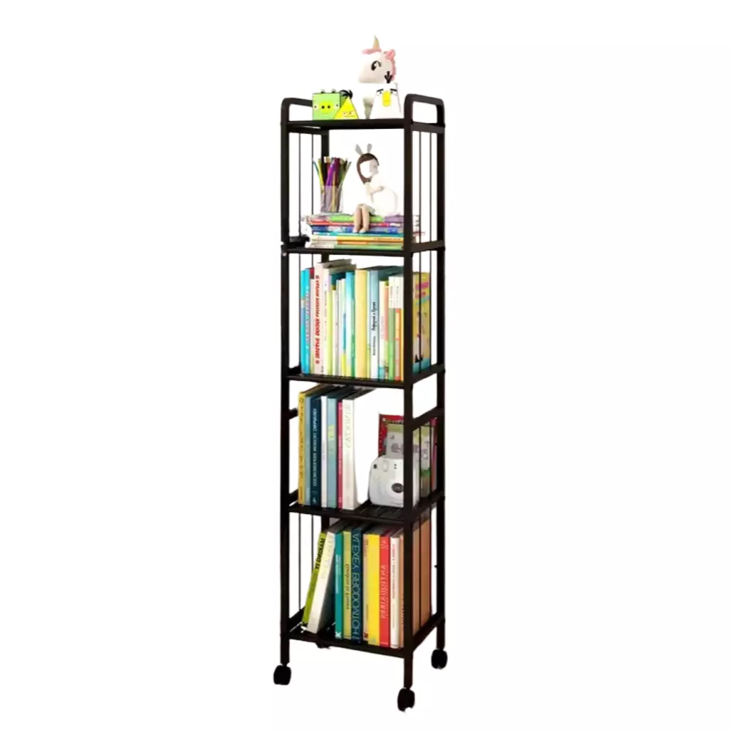 Стеллаж полка напольная на 5 ярусов,передвижная на колесах металлическая цвет черный размер 33х25х141 см