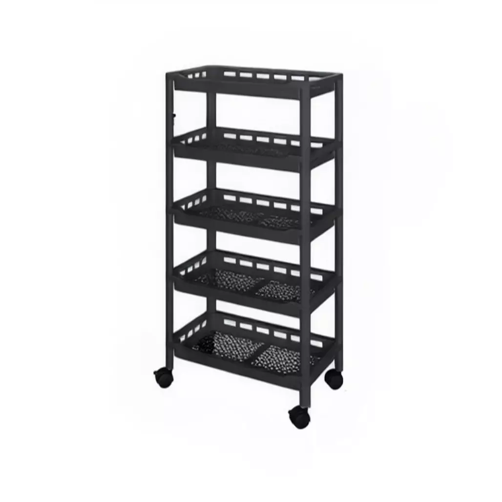 Стеллаж-полка пластиковая передвижная на колесах на 5 ярусов,этажерка универсальная бытовая цвет черный