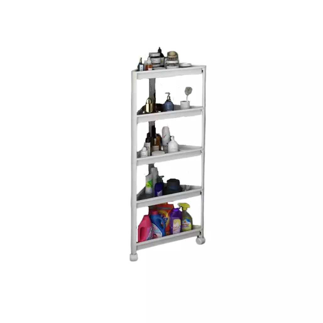 Стеллаж полка угловая передвижная на колесах на 5 ярусов,этажерка универсальная бытовая цвет белый