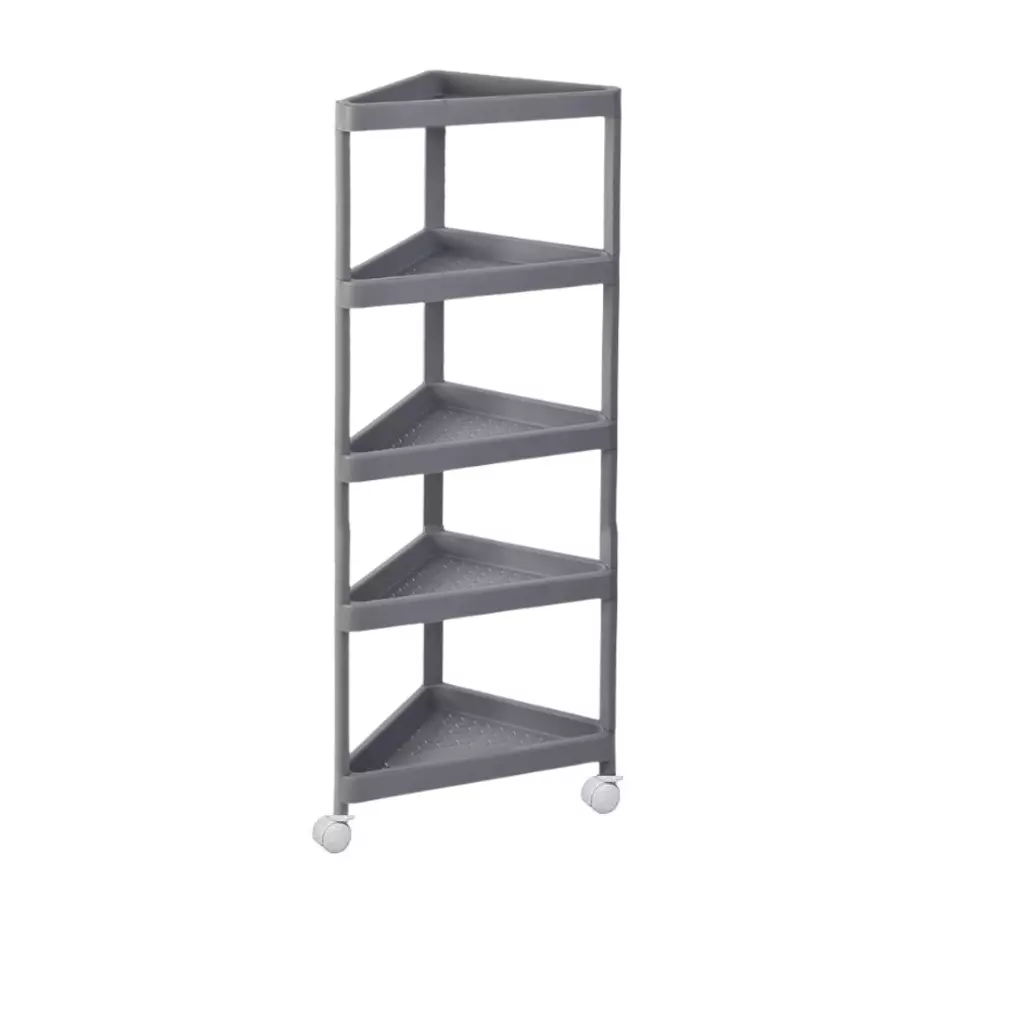 Стеллаж полка угловая передвижная на колесах на 5 ярусов,этажерка универсальная бытовая цвет серый