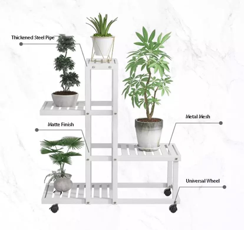 Прочная металлическая конструкция стеллажа обеспечивает устойчивость и надежность. Специальное покрытие защищает металл от коррозии и сохраняет внешний вид изделия, делая его долговечным даже при использовании в условиях повышенной влажности. Передвижная функция позволяет легко перемещать стеллаж по помещению, меняя композицию растений и следуя за солнечными лучами для оптимального роста ваших зеленых насаждений.