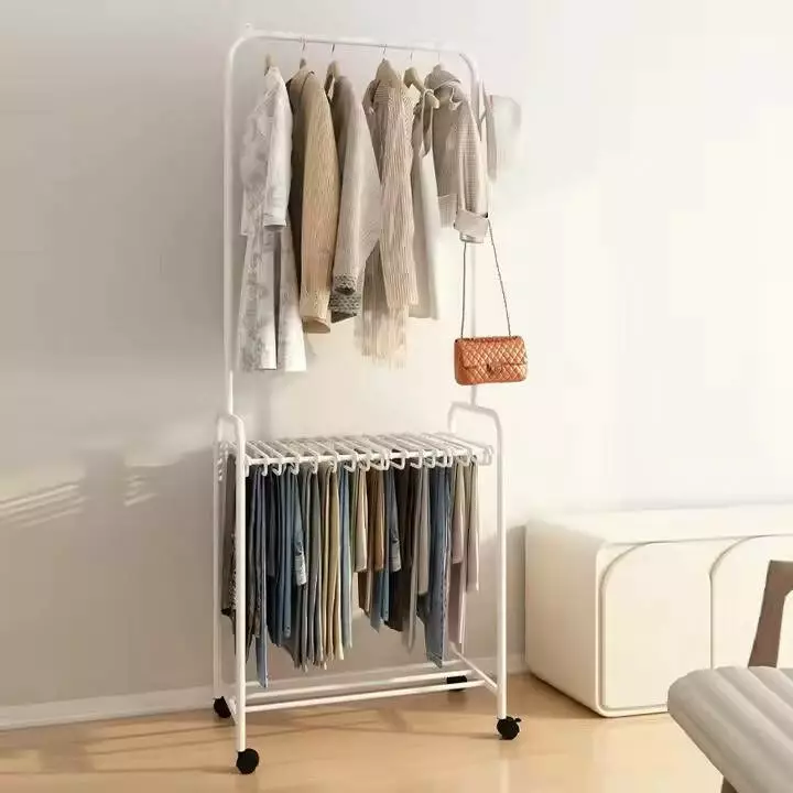 Стеллаж вешалка для штанов и одежды с обвувью и аксессуаров,передвижной с перекладиной для тремпелей,цвет