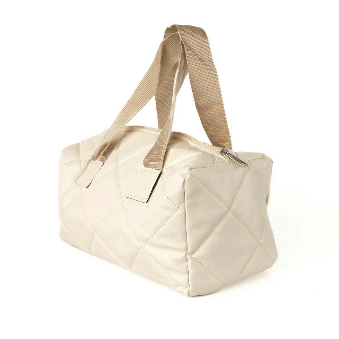 Сумка бочонок женская спортивная из плащевки на молнии, с короткими ручками Молочный