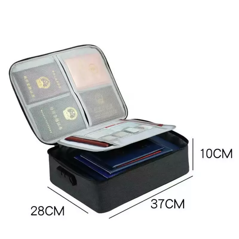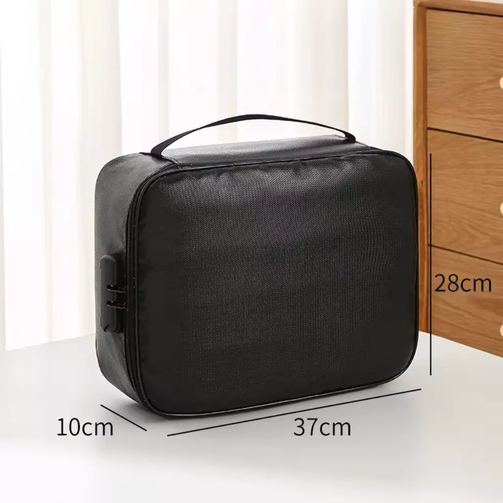 Сумка-органайзер для документов с замком с защитой от воды и огня на 3 отделения,JY-1019, черная