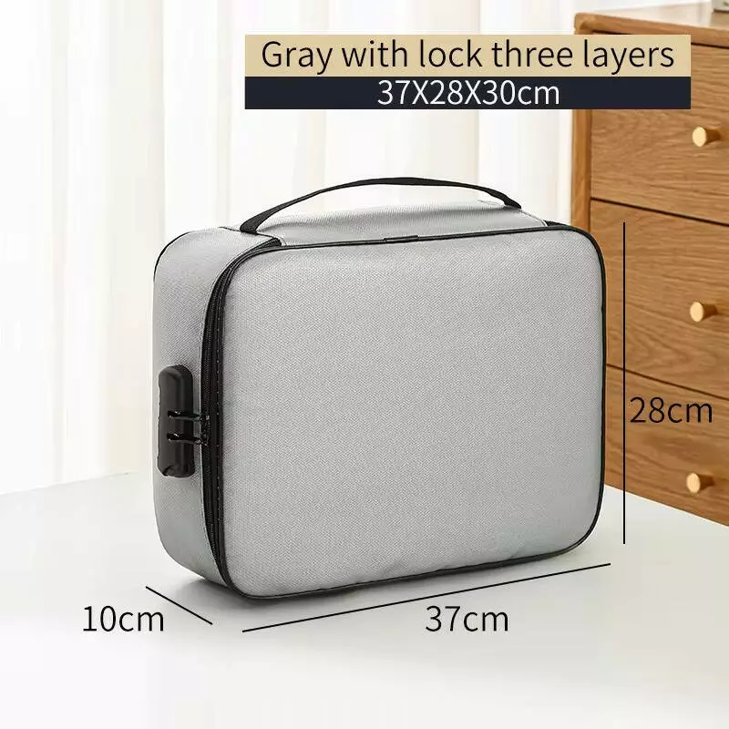 Сумка-органайзер для документов с замком с защитой от воды и огня на 3 отделения,JY-1019, серая