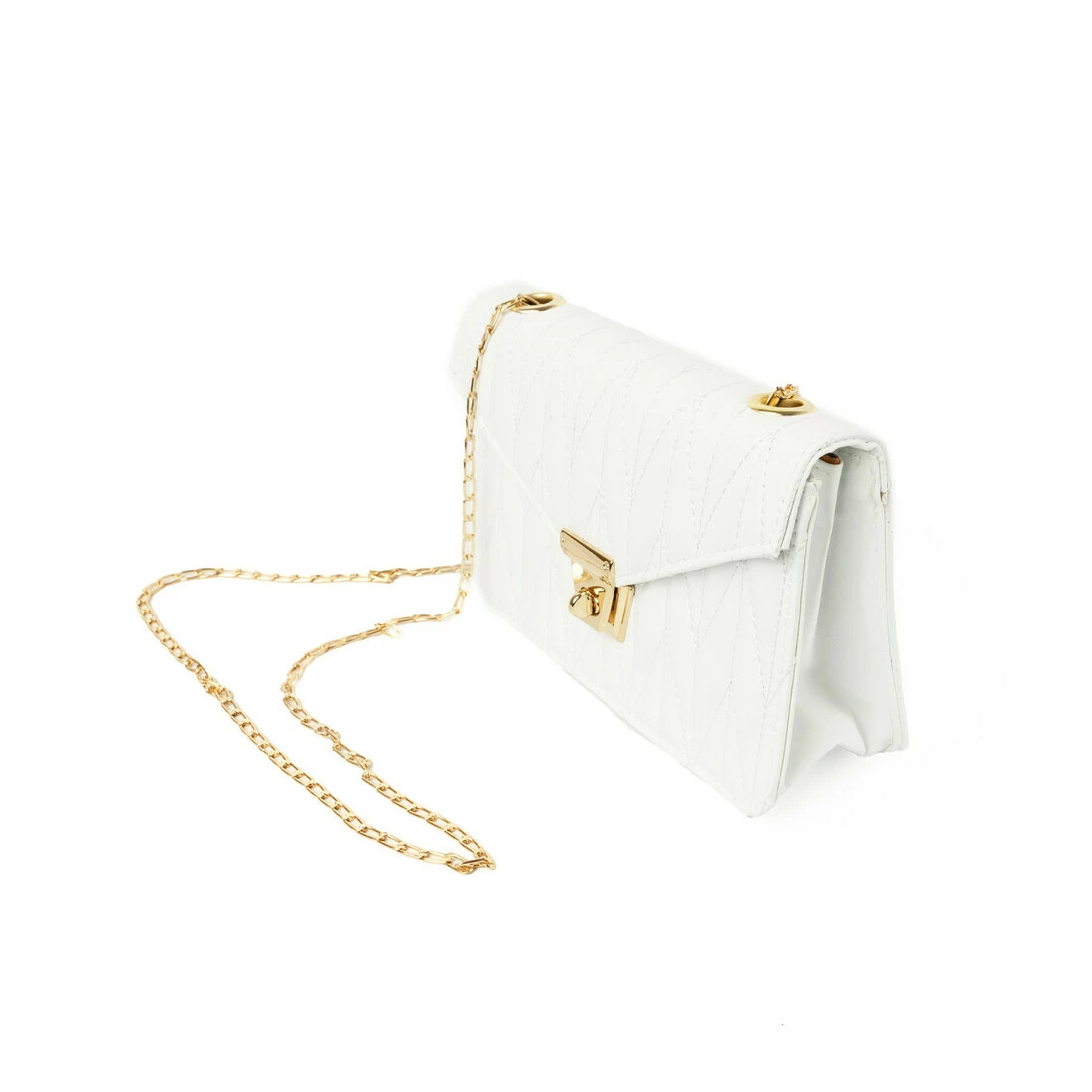 Сумка женская через плечо, сумочка калач со стеганым узором и ручкой-цепочкой, Белый