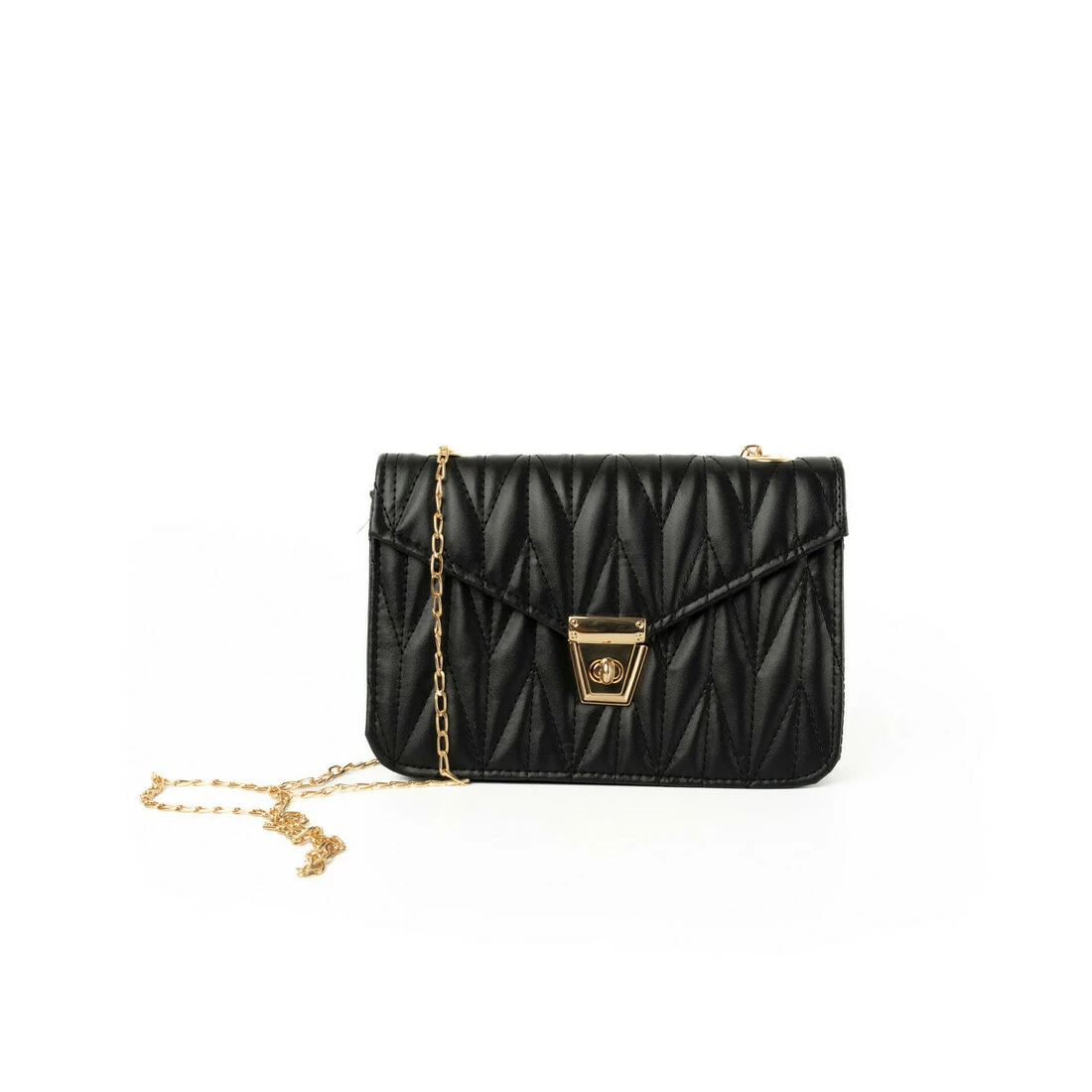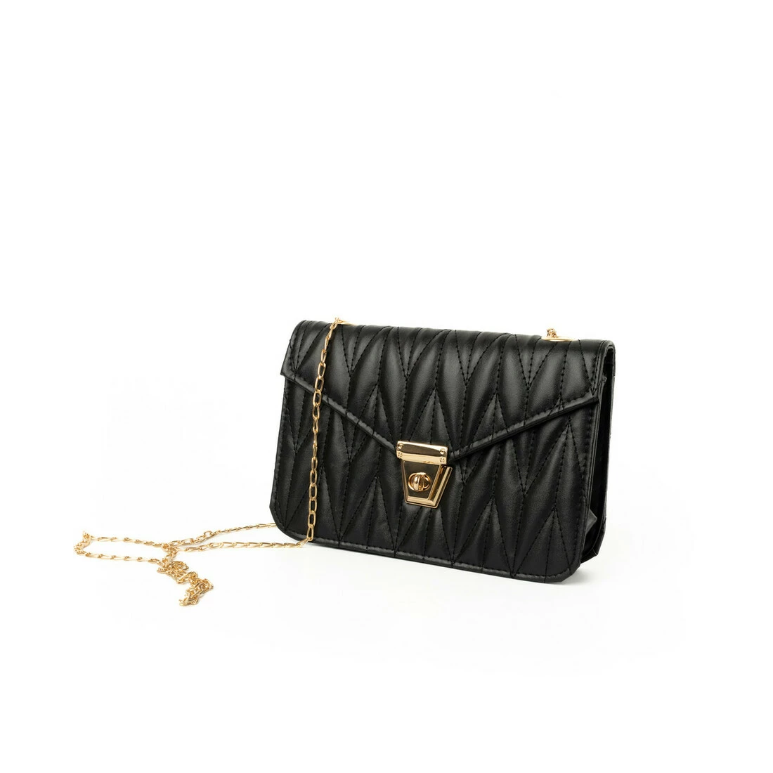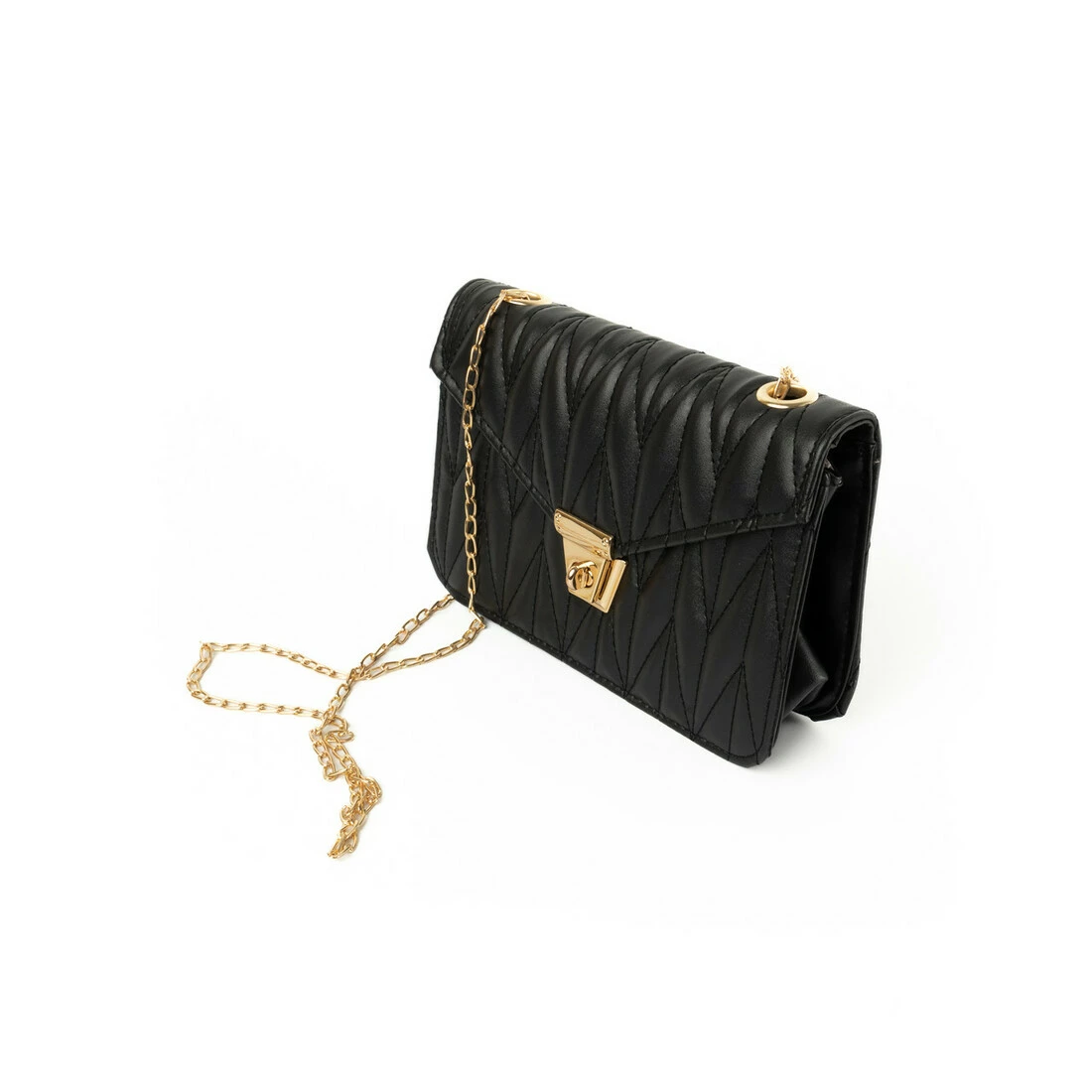 Сумка женская через плечо, сумочка калач со стеганым узором и ручкой-цепочкой, Черный