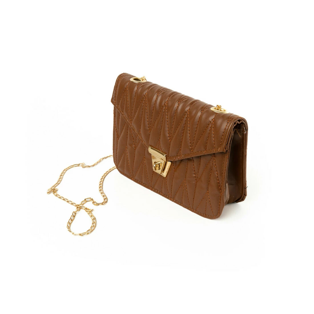 Сумка женская через плечо, сумочка калач со стеганым узором и ручкой-цепочкой, Коричневый