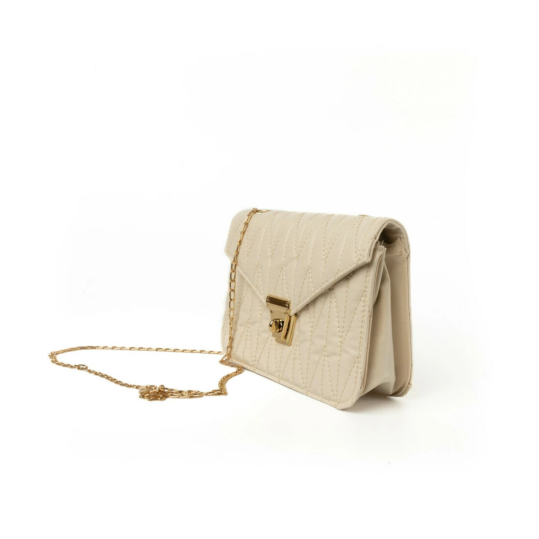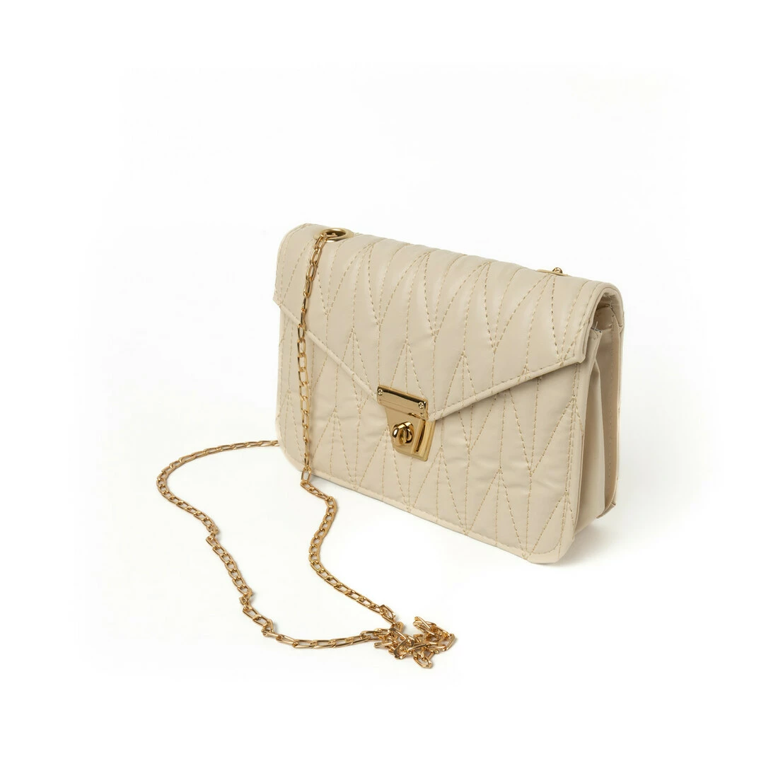 Сумка женская через плечо, сумочка калач со стеганым узором и ручкой-цепочкой, Молочный