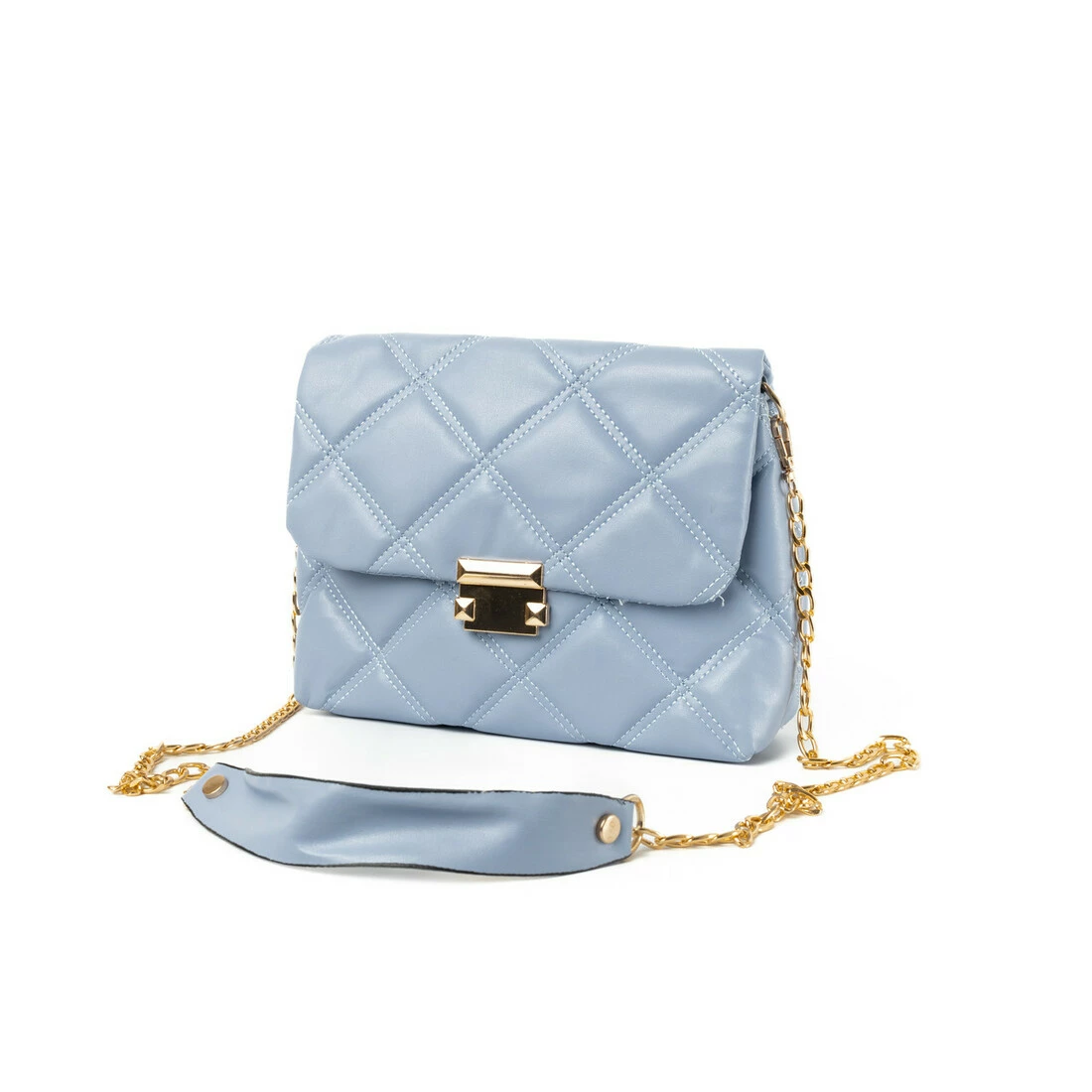 Сумка женская элегантная из качественного стеганого кожзама и длинной ручкой-цепочкой, Голубой