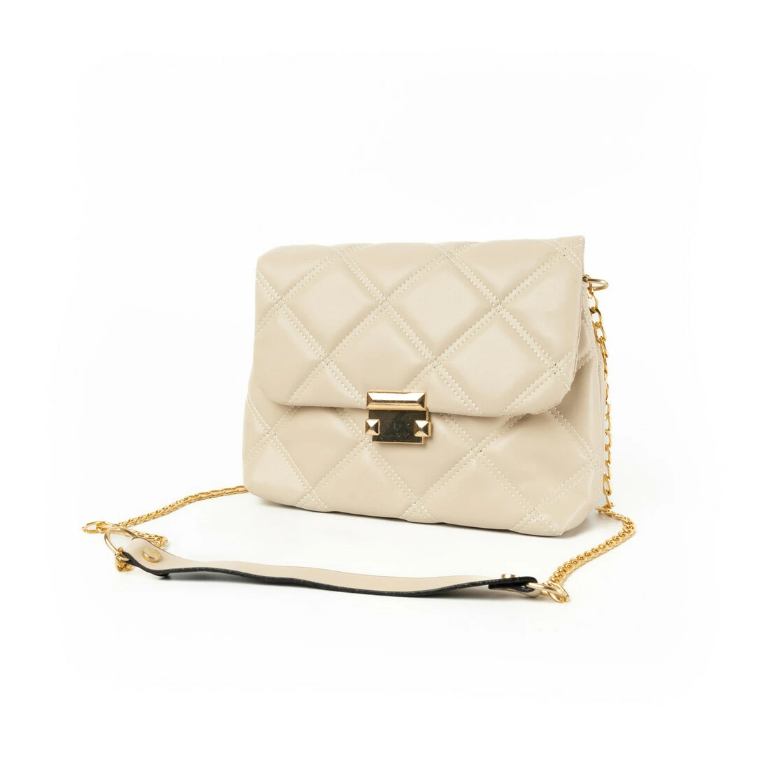 Сумка женская элегантная из качественного стеганого кожзама и длинной ручкой-цепочкой, Молочный