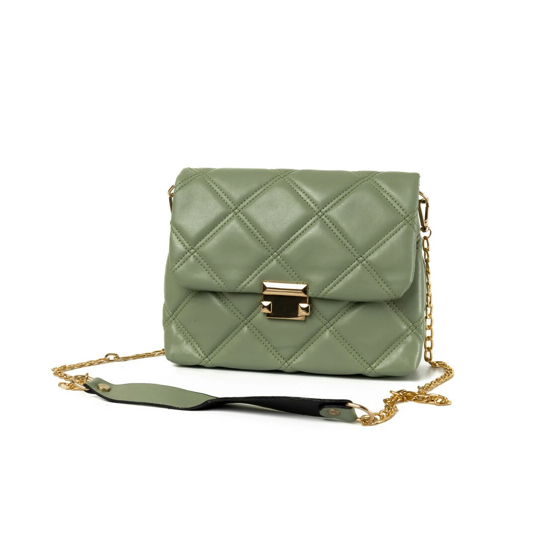 Сумка женская элегантная из качественного стеганого кожзама и длинной ручкой-цепочкой, Оливковый