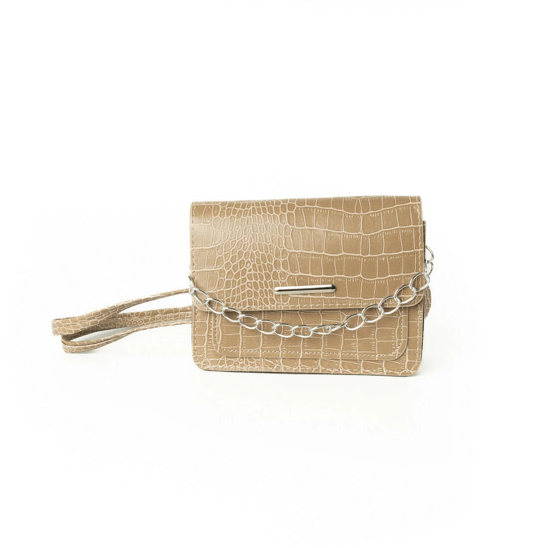 Сумка женская из искусственной кожи "под крокодила", с цепочкой и ремешком, сумочка клатч, Светло-коричневый