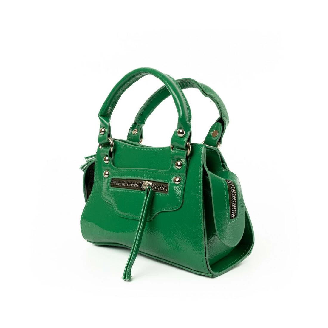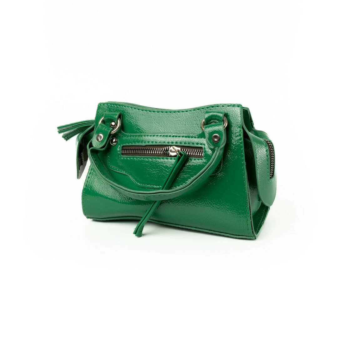 Сумка женская лаковая, вместительная стильная сумочка на молнии, Зеленый