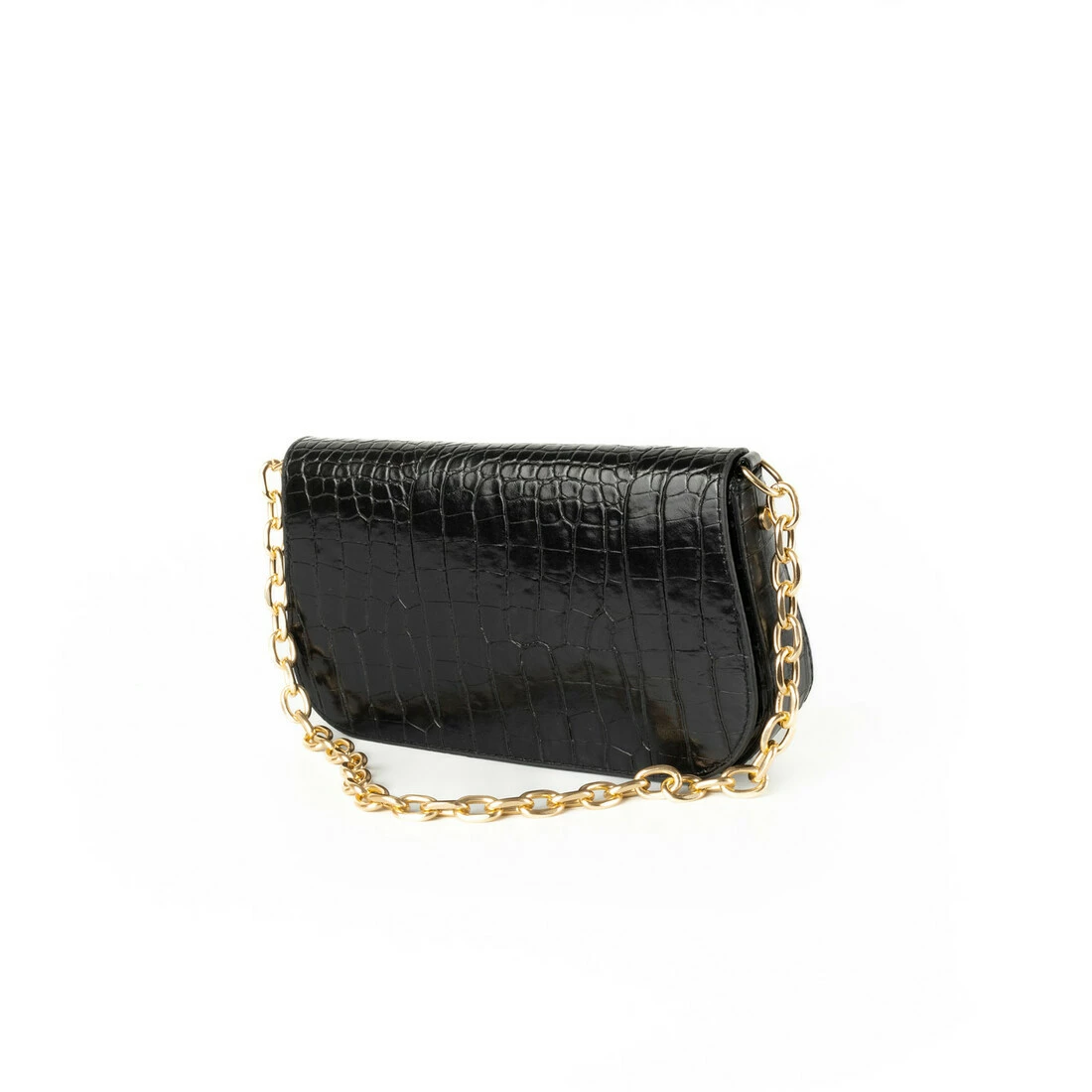 Сумка женская с ручкой цепочкой золотого цвета, элегантный женский лаковый клатч, Черный