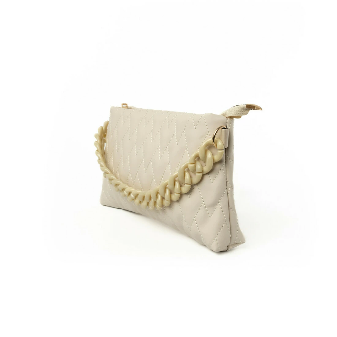 Сумка женская стильная, качественная красивая стеганая сумочка с ручкой-цепочкой, женский клатч, Молочный