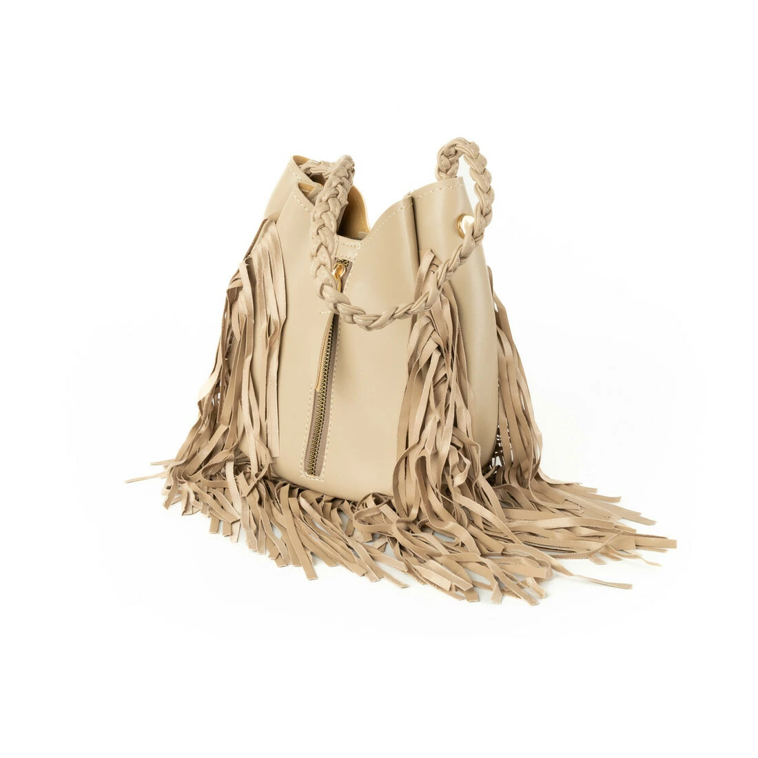 Сумка женская стильная с бахрамой из качественной искусственной кожи, Бежевый