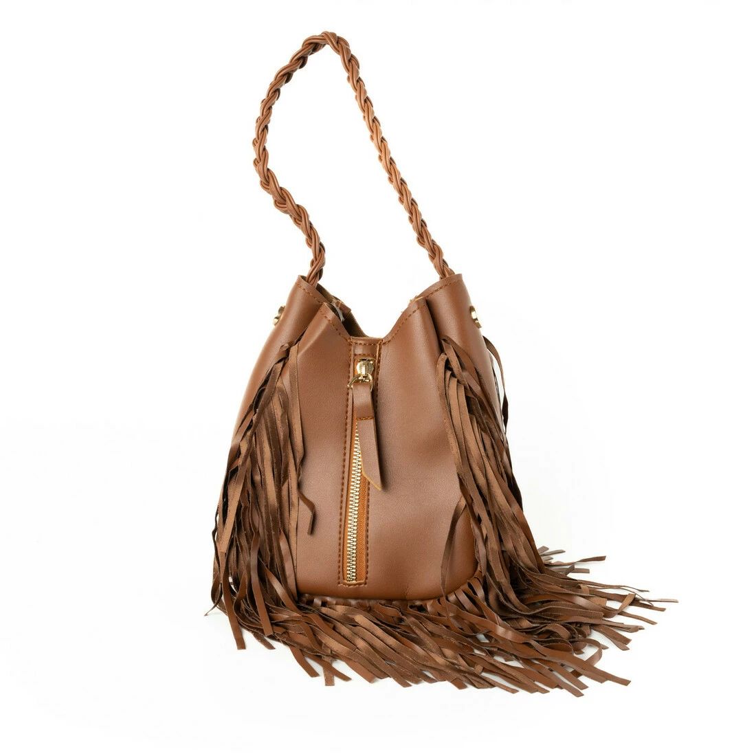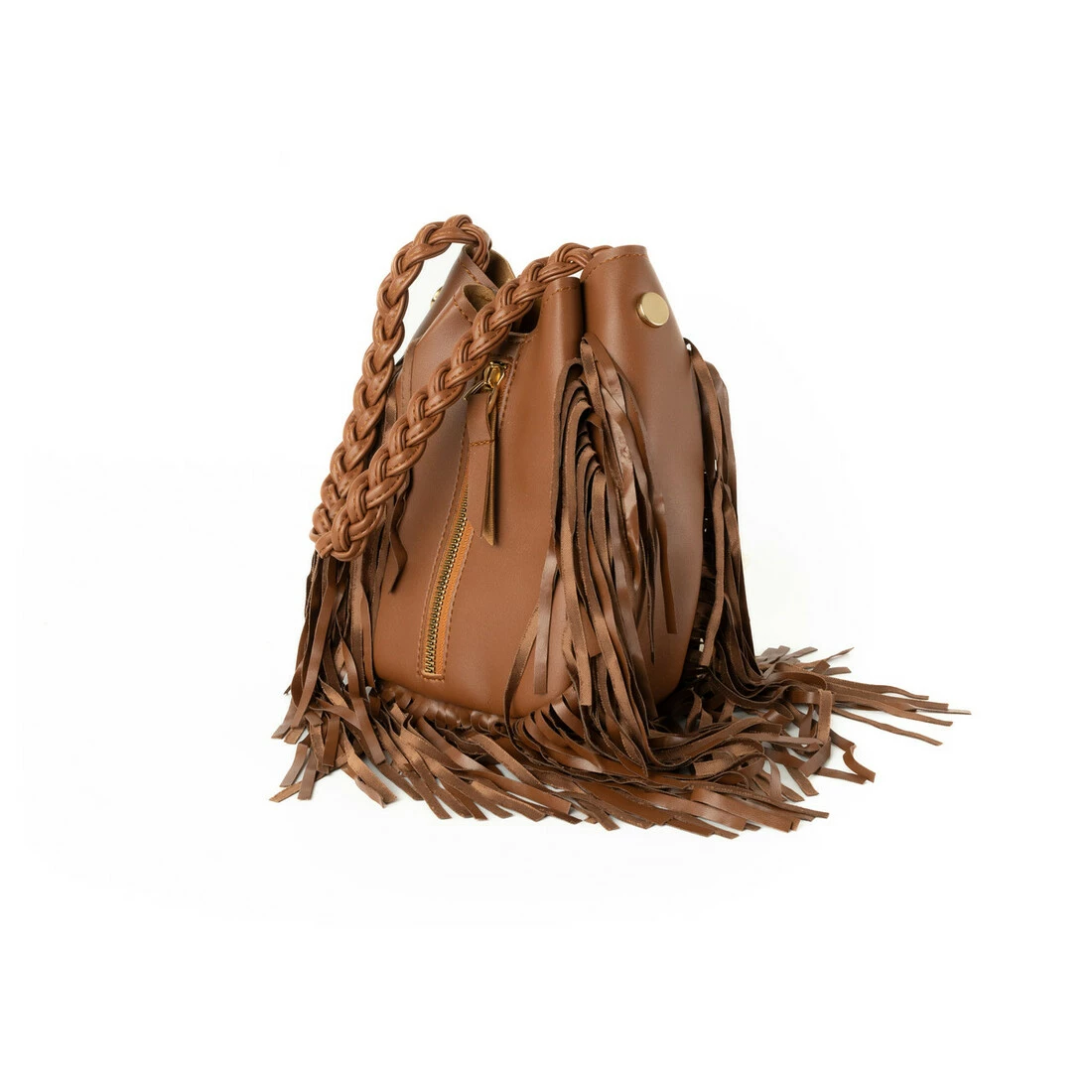 Сумка женская стильная с бахрамой из качественной искусственной кожи, Коричневый