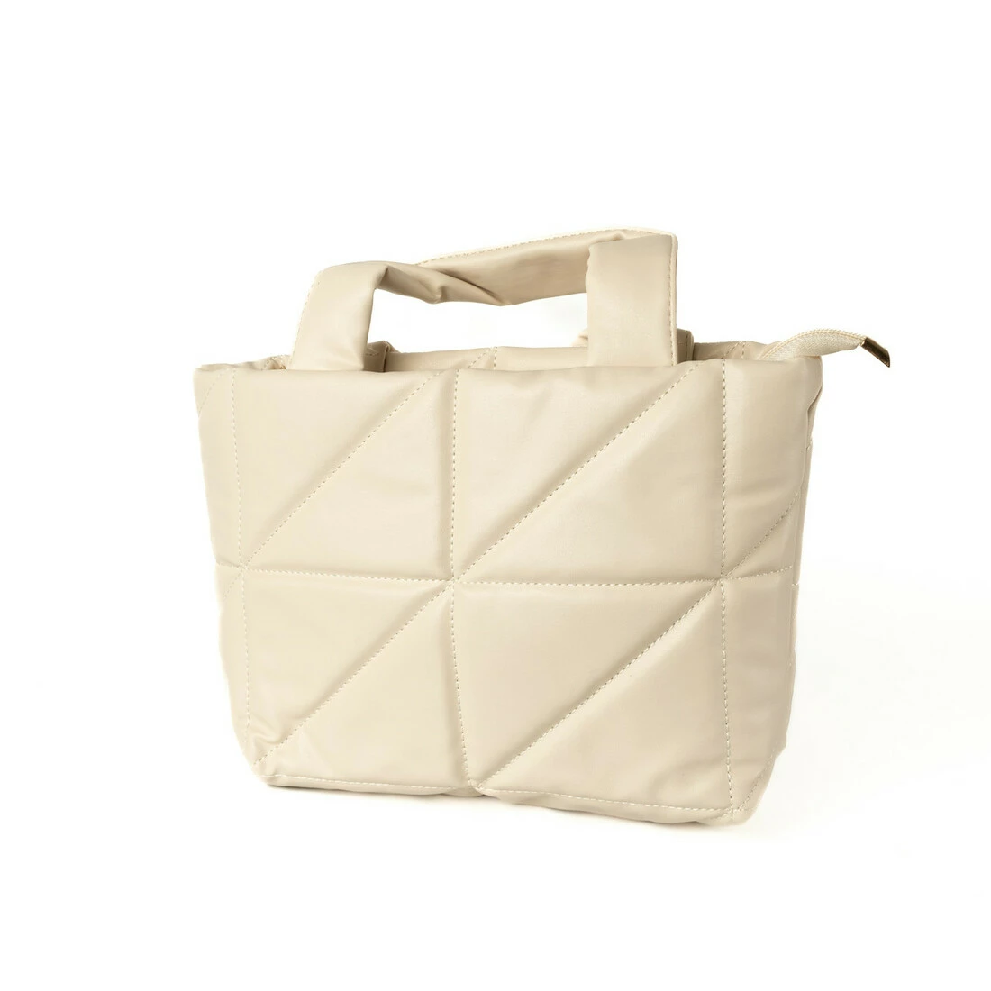 Сумка женская вместительная практичная на молнии из стеганого качественного кожзама, Молочный