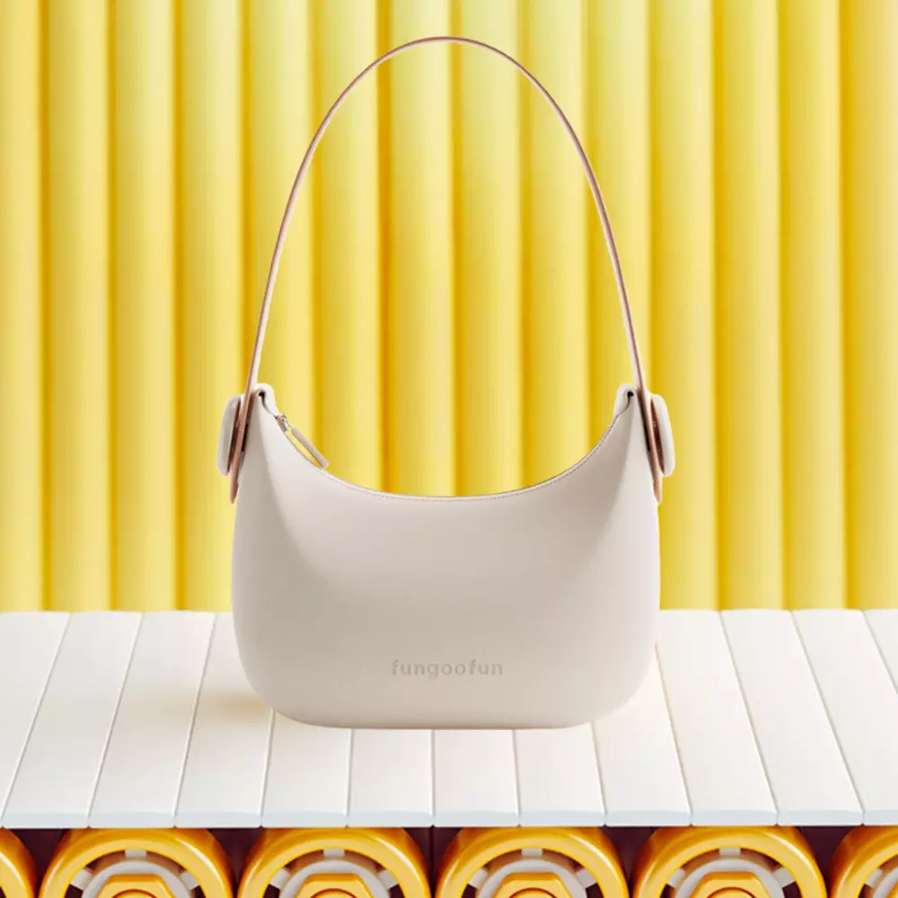 Сумочка силиконовая клатч женский на ремешке с ручками водонепроницаемая сумка Fungoofun на молнии, бежевая