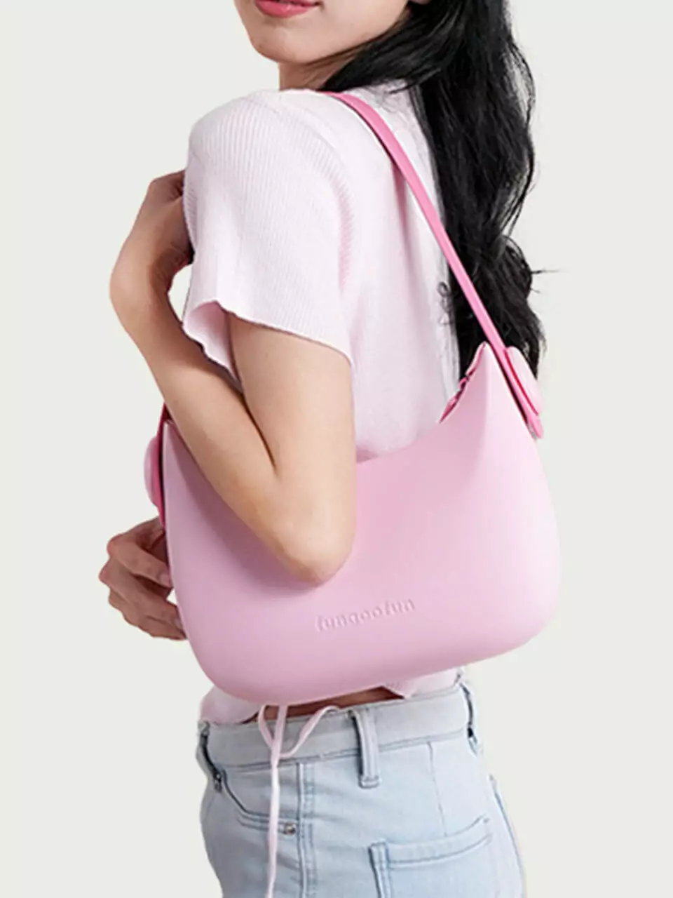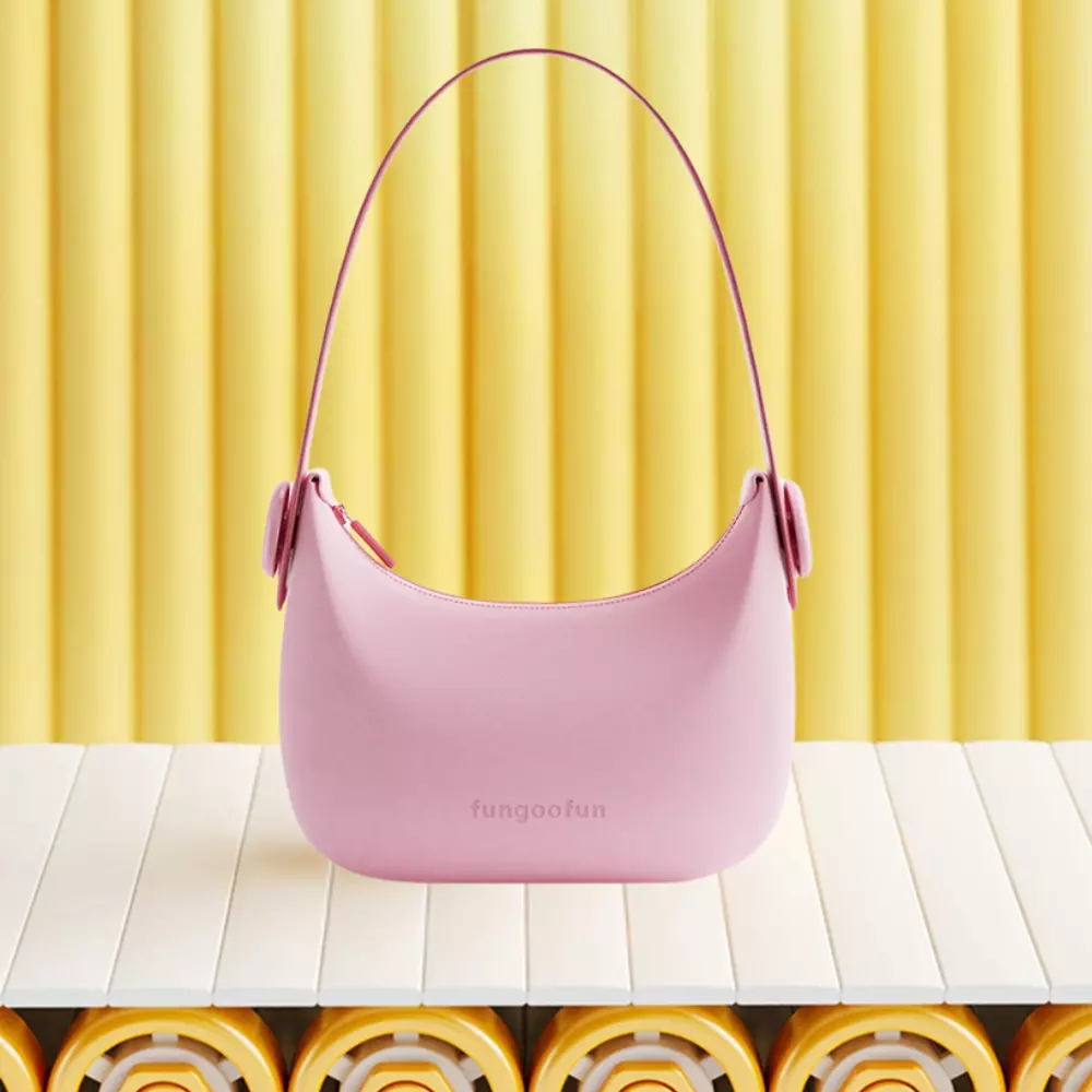 Сумочка силиконовая клатч женский на ремешке с ручками водонепроницаемая сумка Fungoofun на молнии, розовая