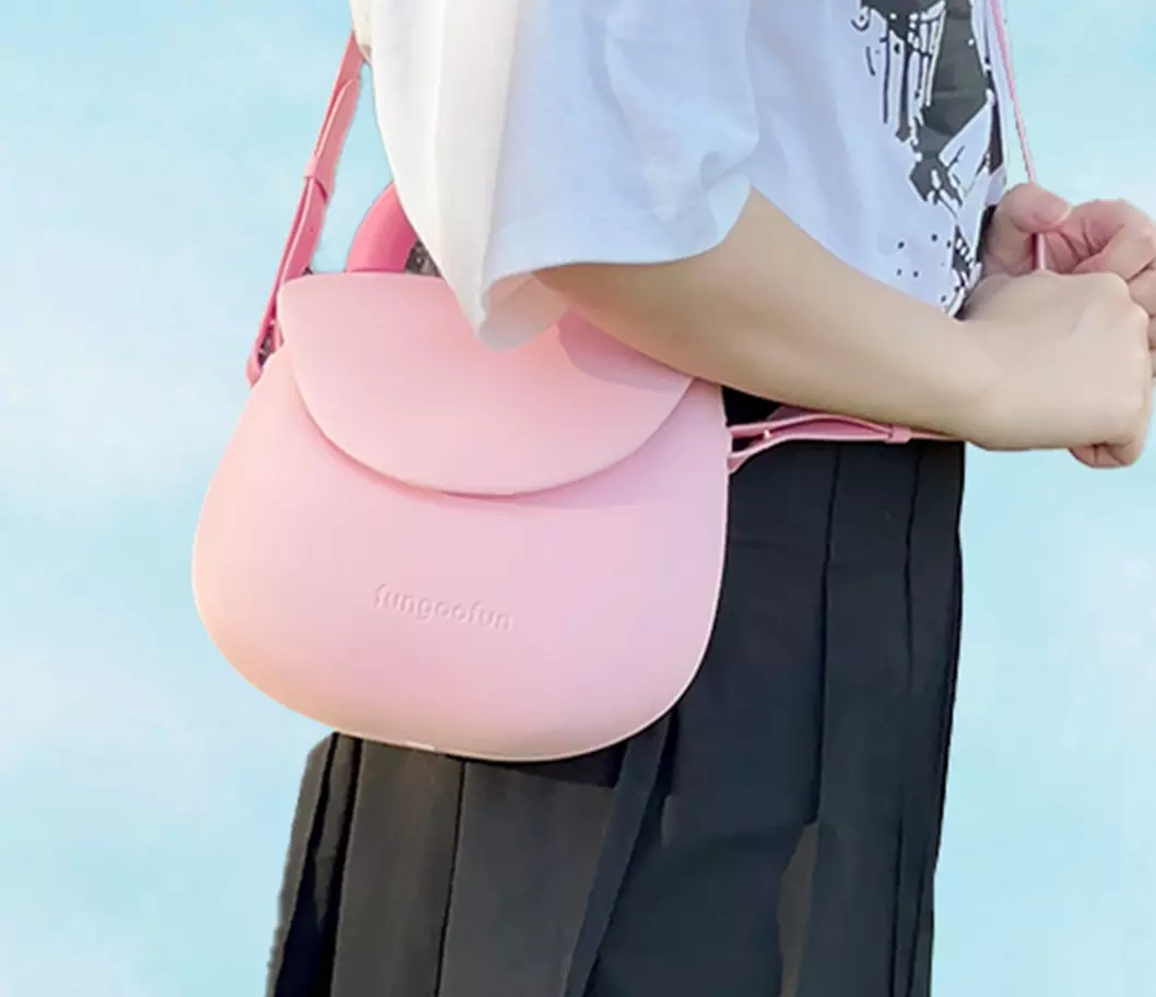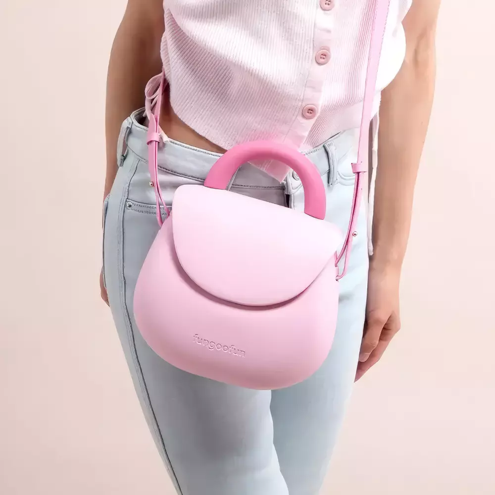 Сумочка силиконовая клатч женский на ремешке с ручками водонепроницаемая сумка Fungoofun на молнии, розовая