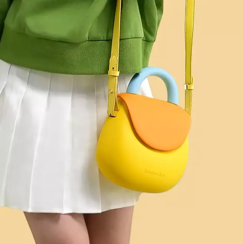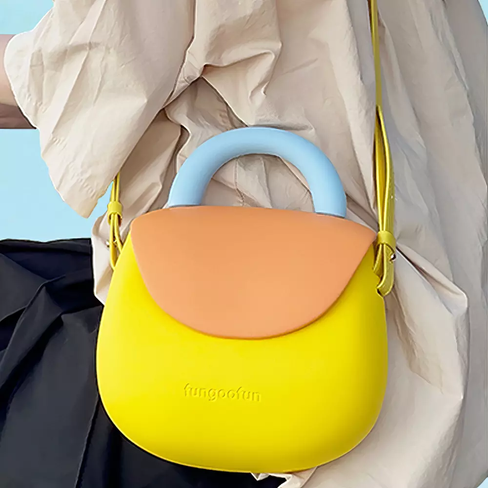 Сумочка силиконовая клатч женский на ремешке с ручками водонепроницаемая сумка Fungoofun, желтая с оранжевым