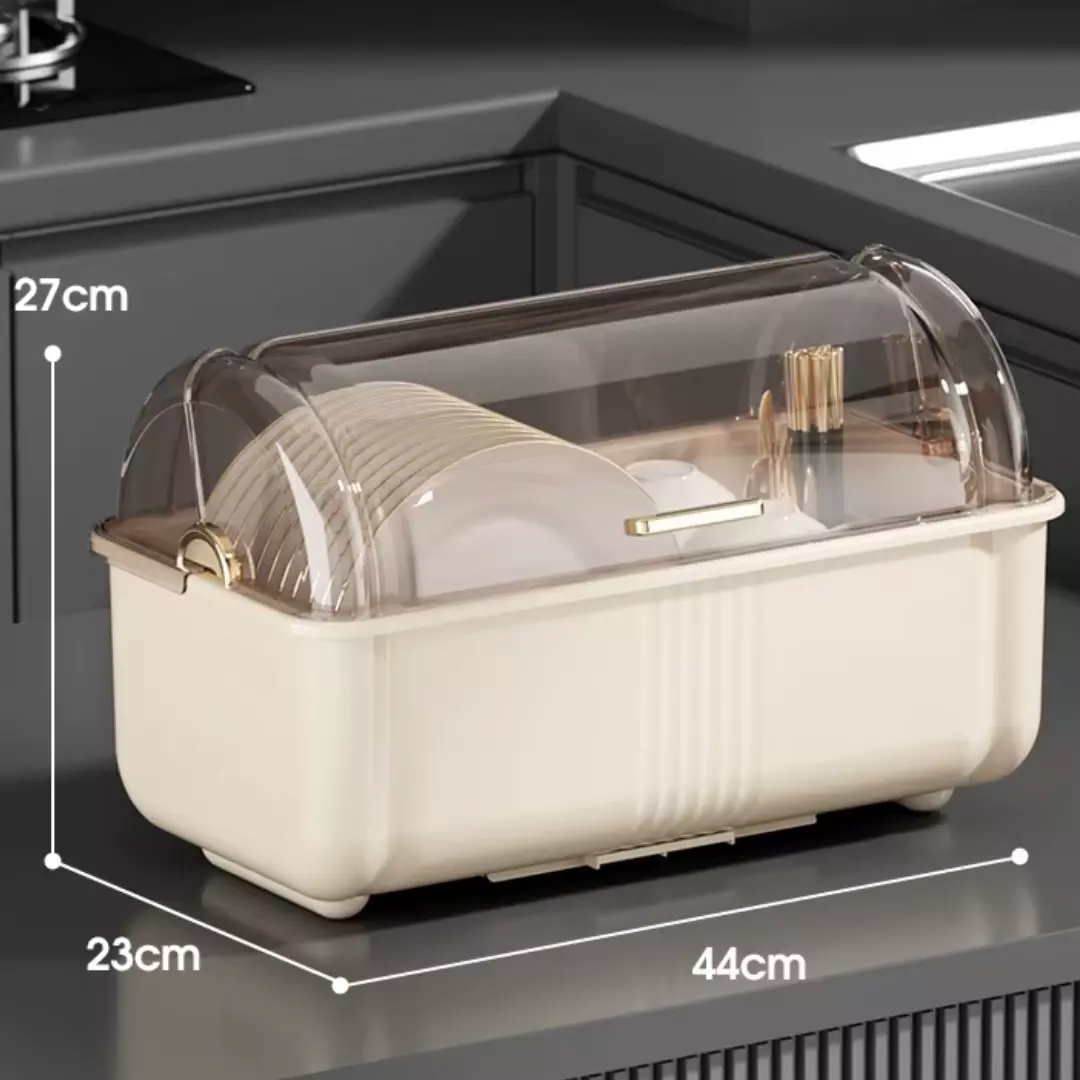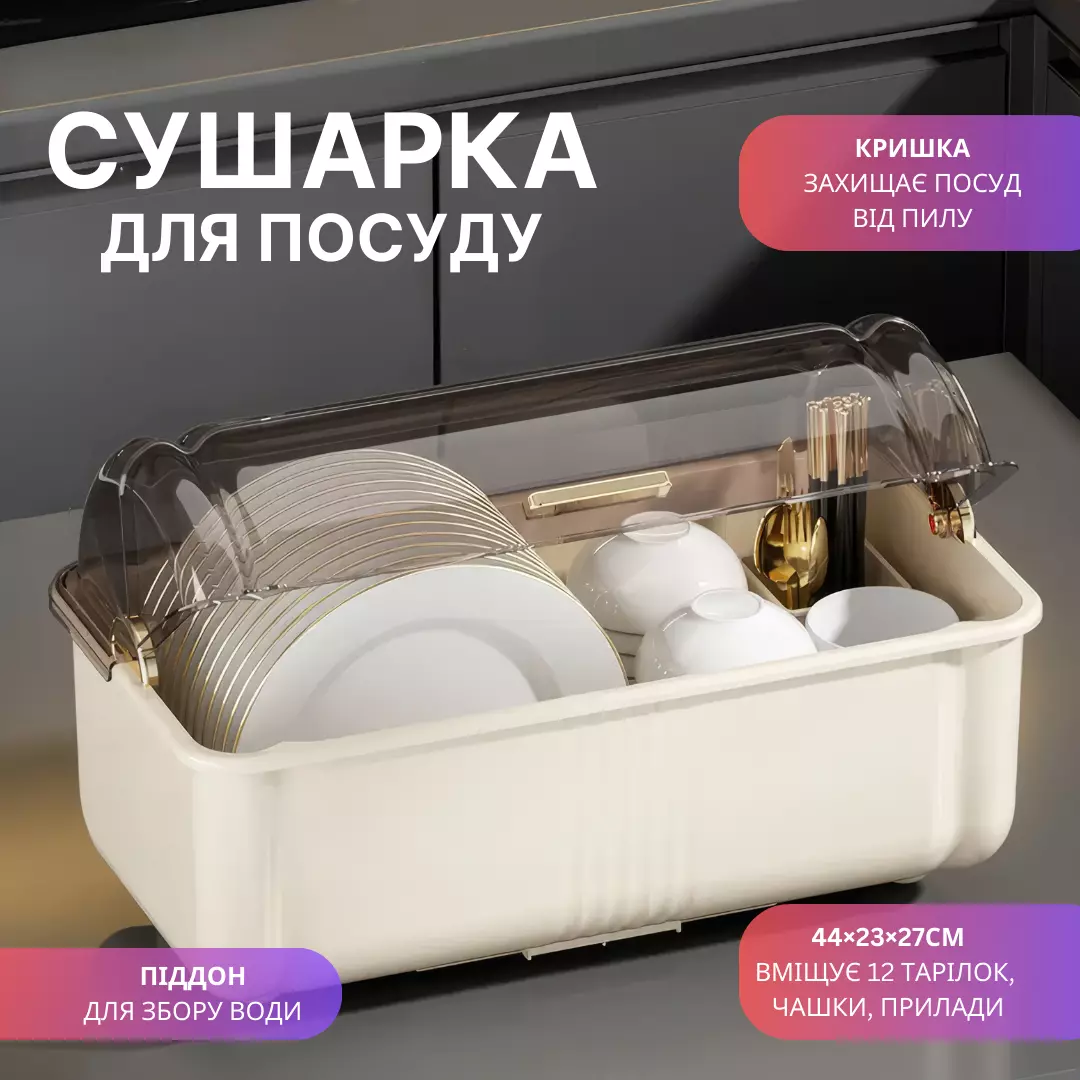 Сушилка для посуды с отделением для приборов, кухонный органайзер, контейнер для хранения, 44×23×27см, бежевый