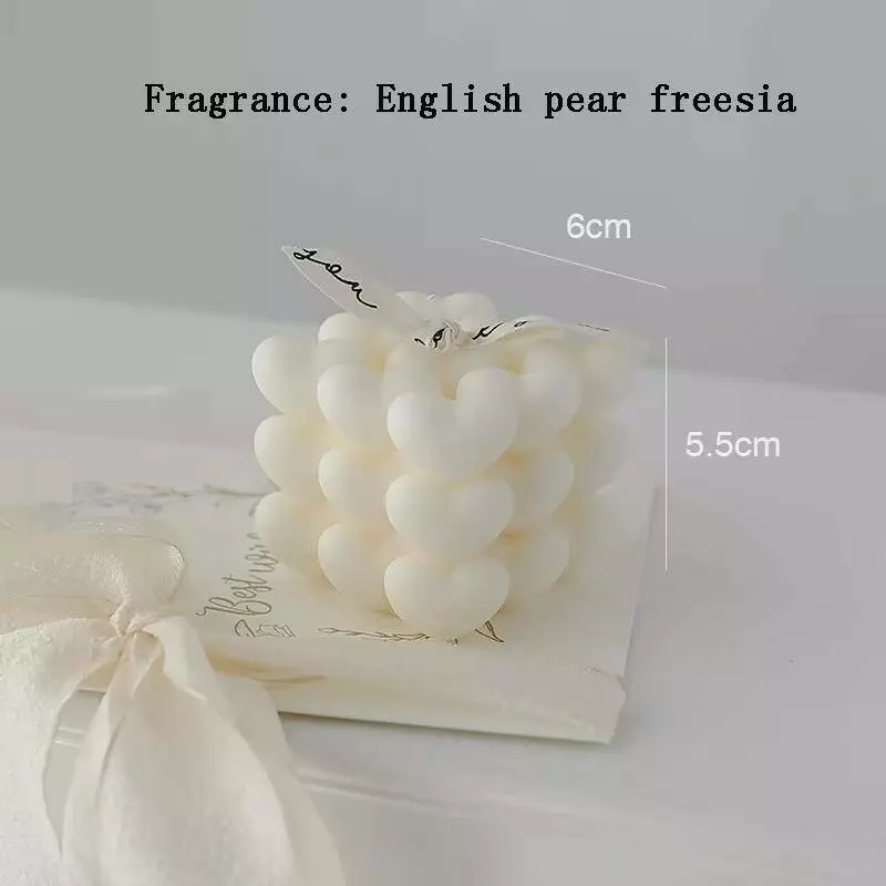 Свеча ручной работы в виде кубика сердец — это стильное дополнение