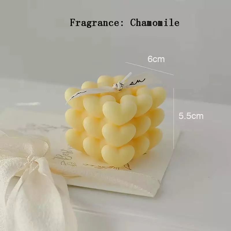 Свеча ручной работы в виде кубика сердец — это стильное дополнение