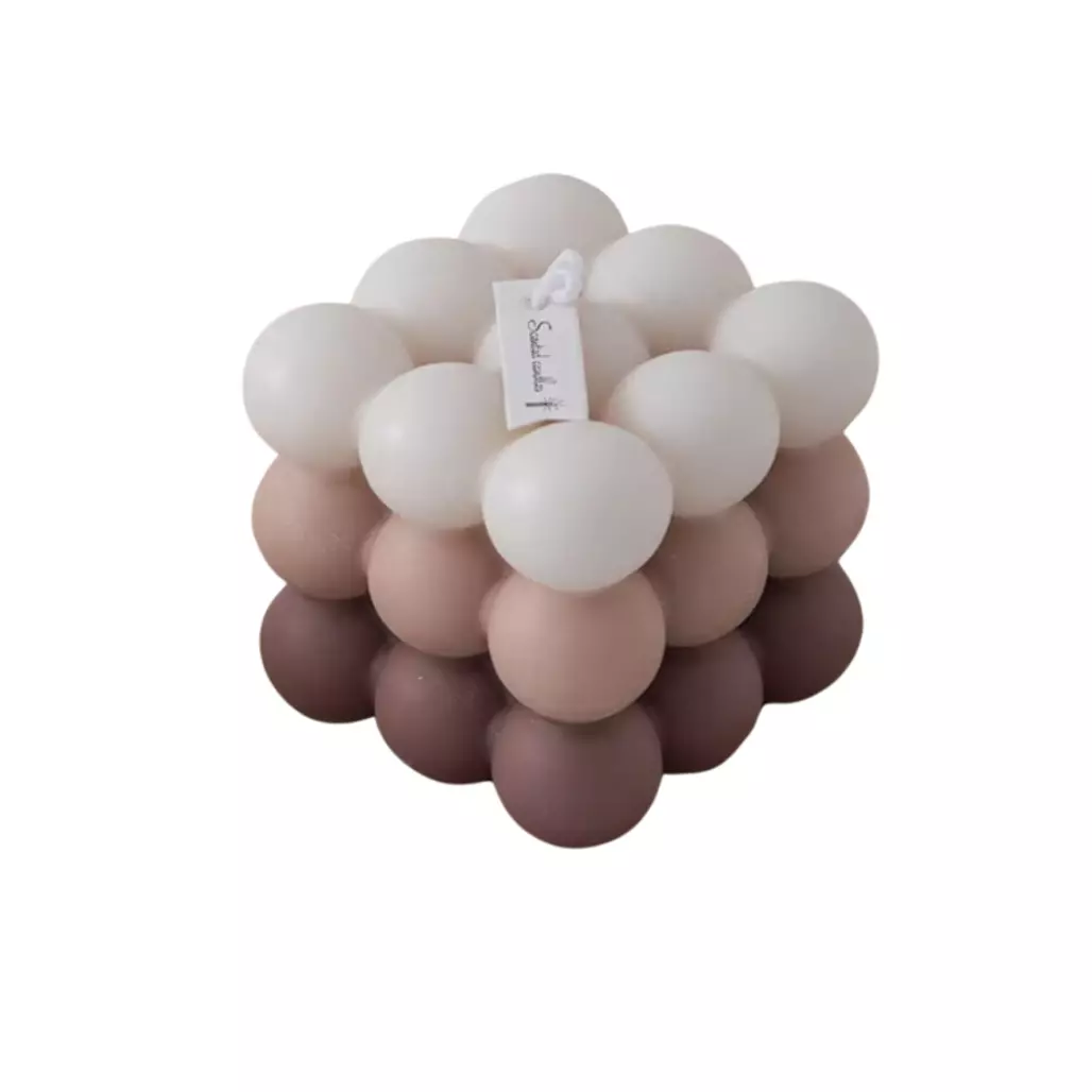 Свеча "Кубик пузырей" ручной работы в коричневом цвете