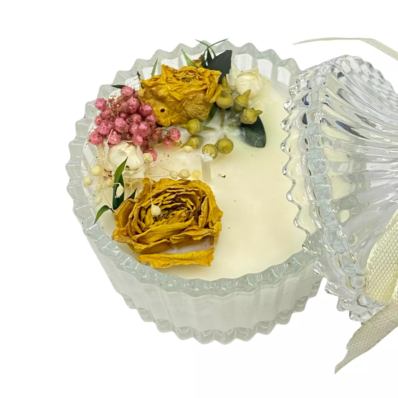 Созданная вручную, эта свеча отличается изысканным дизайном.