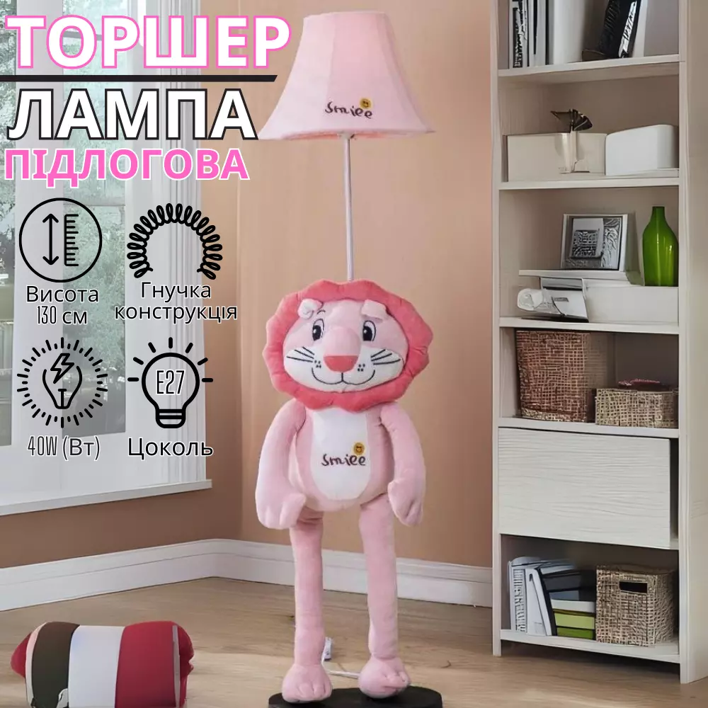 Торшер "Розовый лев" станет любимым элементом декора и создаст волшебную атмосферу в комнате вашего ребенка!
