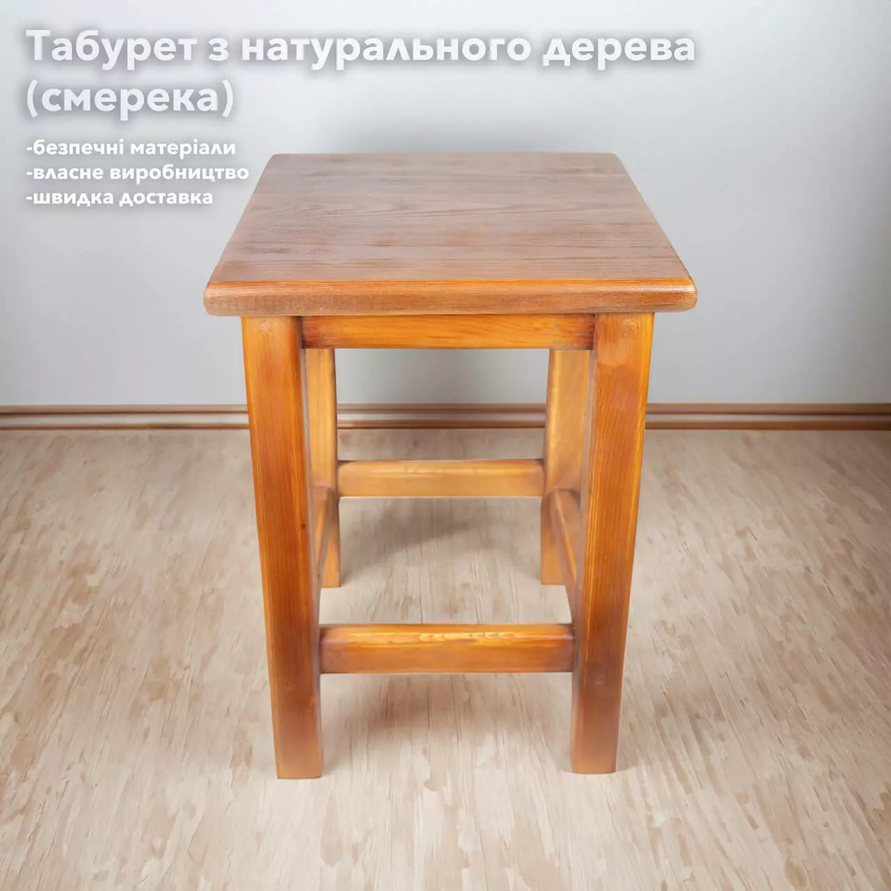 Табурет с натурального дерева ель с дополнительным укреплением ножек, сделано в Украине