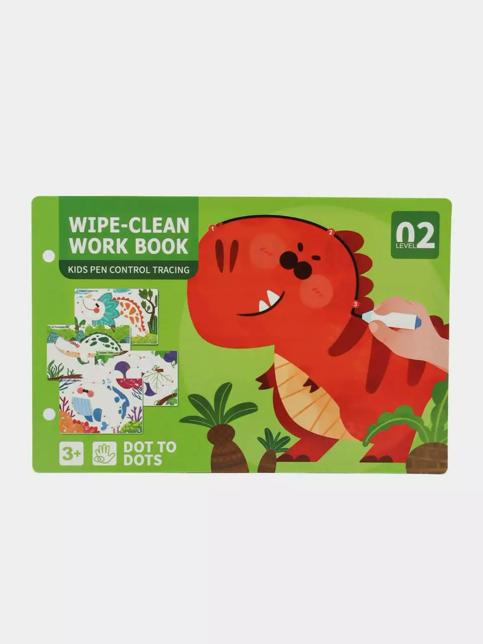 Тетрадь формата 21.7 х 14.7 х 5.3 см удобно брать с собой в дорогу или использовать дома. В комплект входят два маркера, стирательная резинка, наклейки для поощрения успехов, а также карточки с сертификатами для наград. Все страницы многоразовые — можно рисовать и стирать, что делает набор долговечным и практичным для многократных занятий.