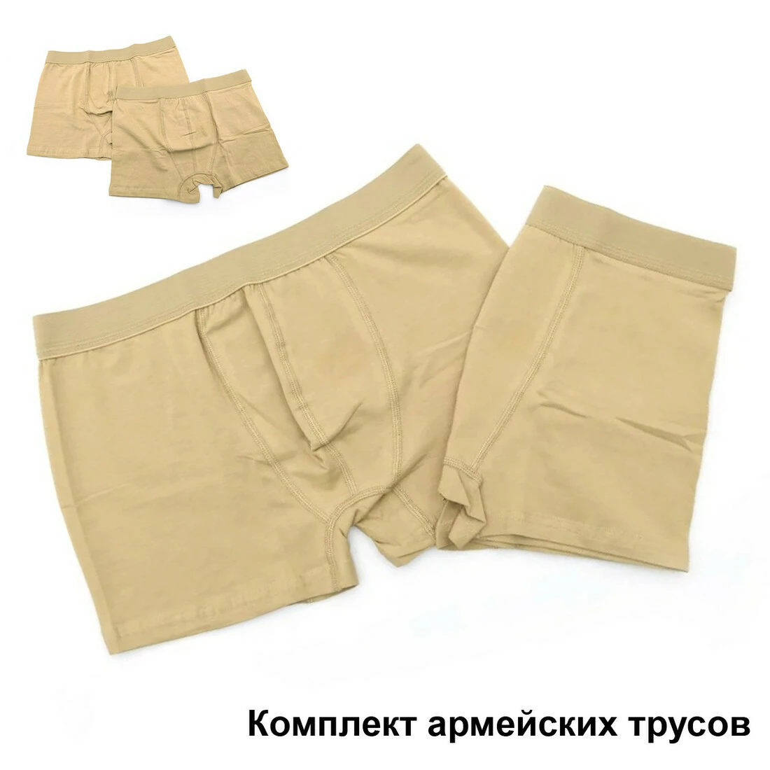Трусы мужские армейские, боксеры военные, набор из 2 пар трусов-боксеров, Бежевый Размер L/XL