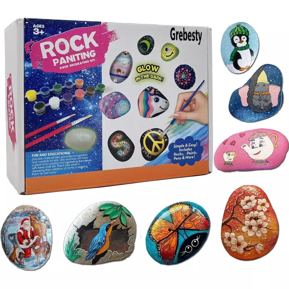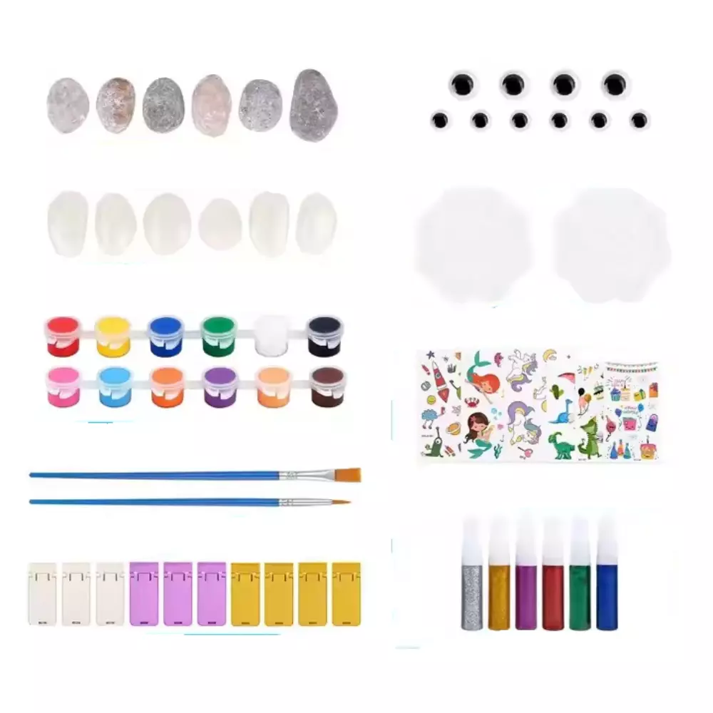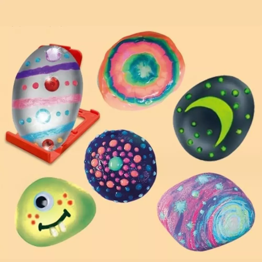 Творческий набор для рисования на камне: светящиеся краски, кисти, наклейки, комплект для хобби и детей